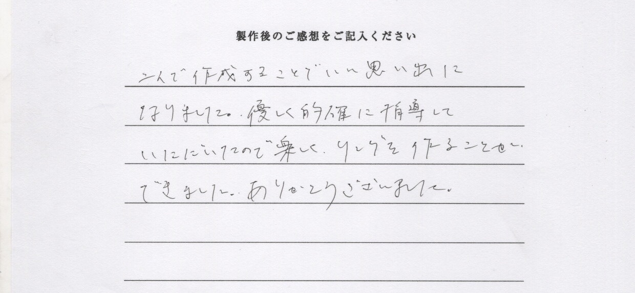 優しく的確に指導していただいたので楽しくリングを作ることができました。