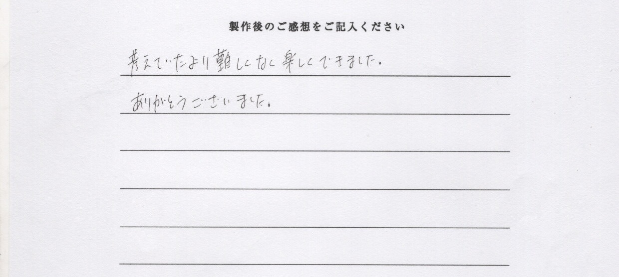 考えていたより難しくなく楽しくできました。 ありがとうございました。