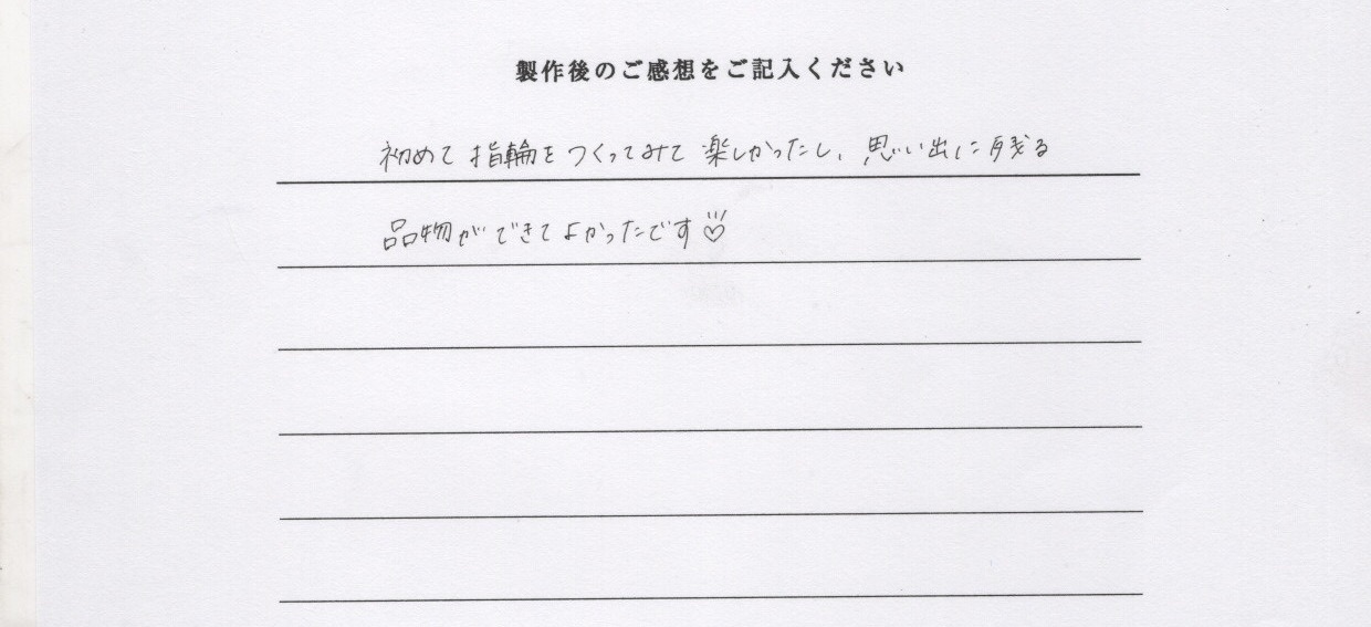 初めて指輪を作ってみて楽しかったし、思い出に残る品物ができてよかったです。