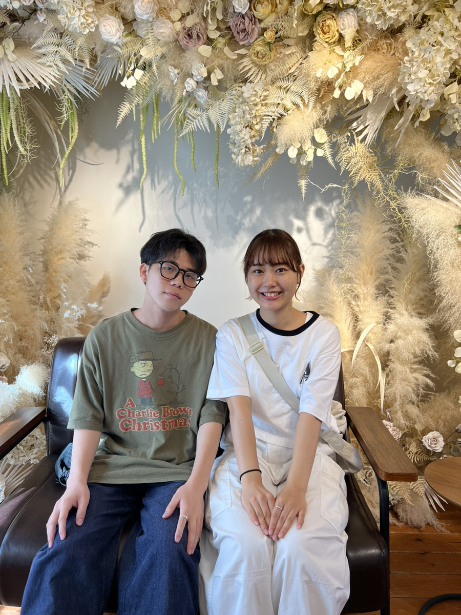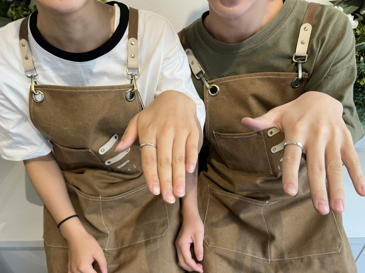 お二人の選んだペアリングはスクエア平打ちリングのハンマー仕上げ。
