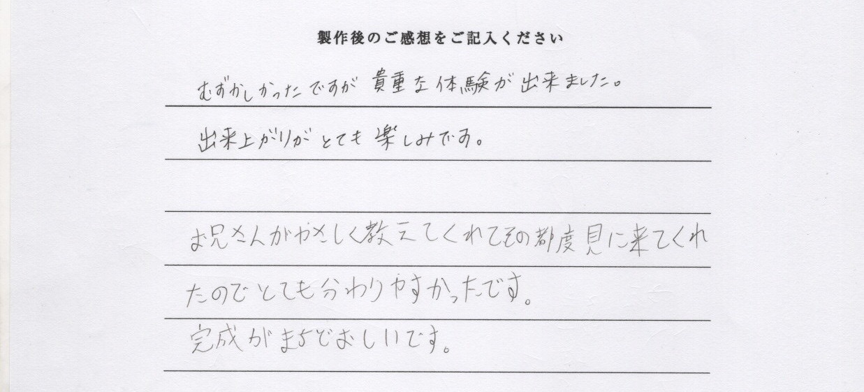 お兄さんがやさしく教えてくれてその都度見に来てくれたのでとても分かりやすかったです。