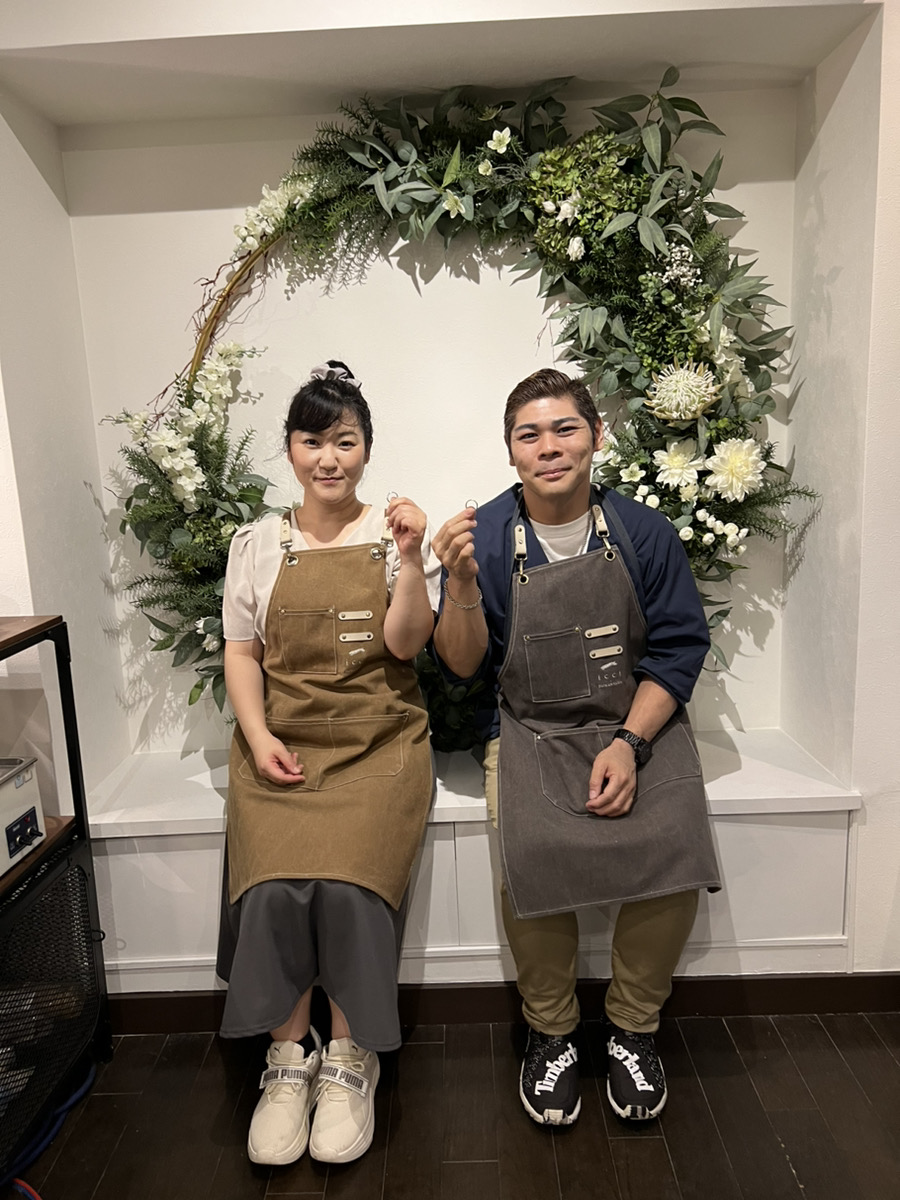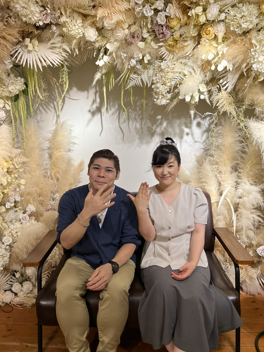 お二人それぞれ自分好みのリングを選んだペアリング制作をして頂きました。