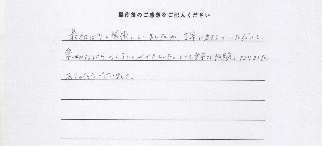 丁寧に教えていただいて、 楽しみながらつくることができました。