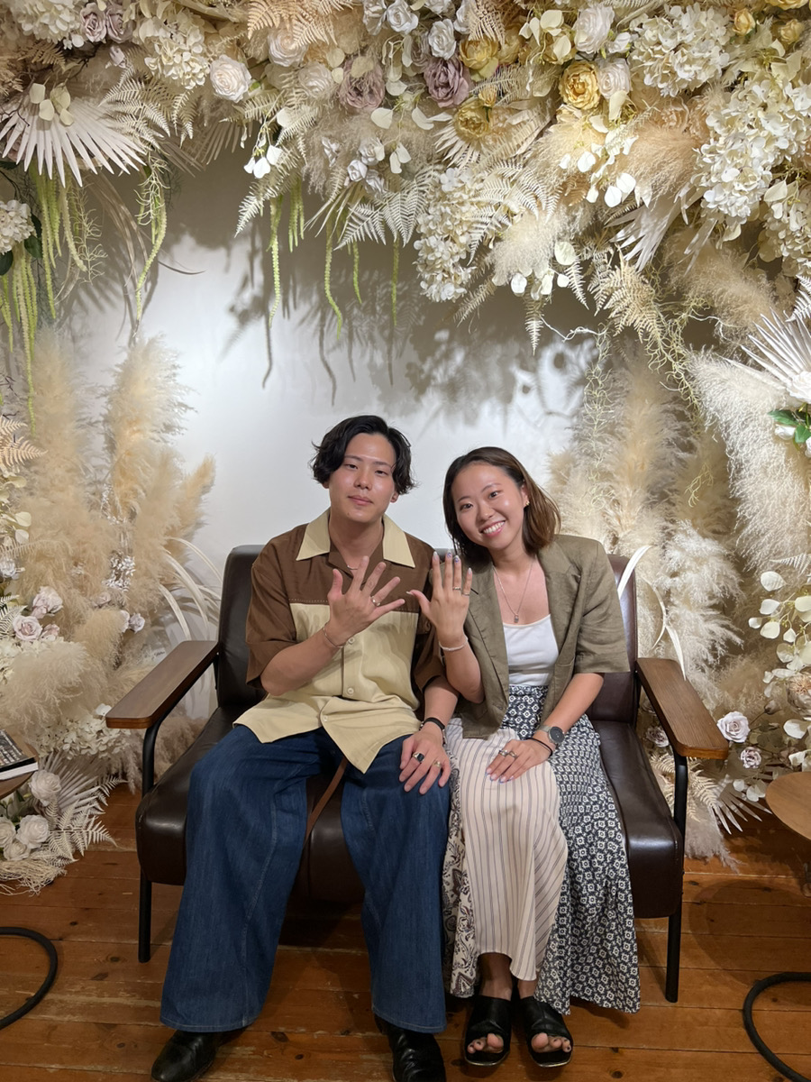 お二人のスタイルに合うシャープに輝く綺麗なリングが完成。