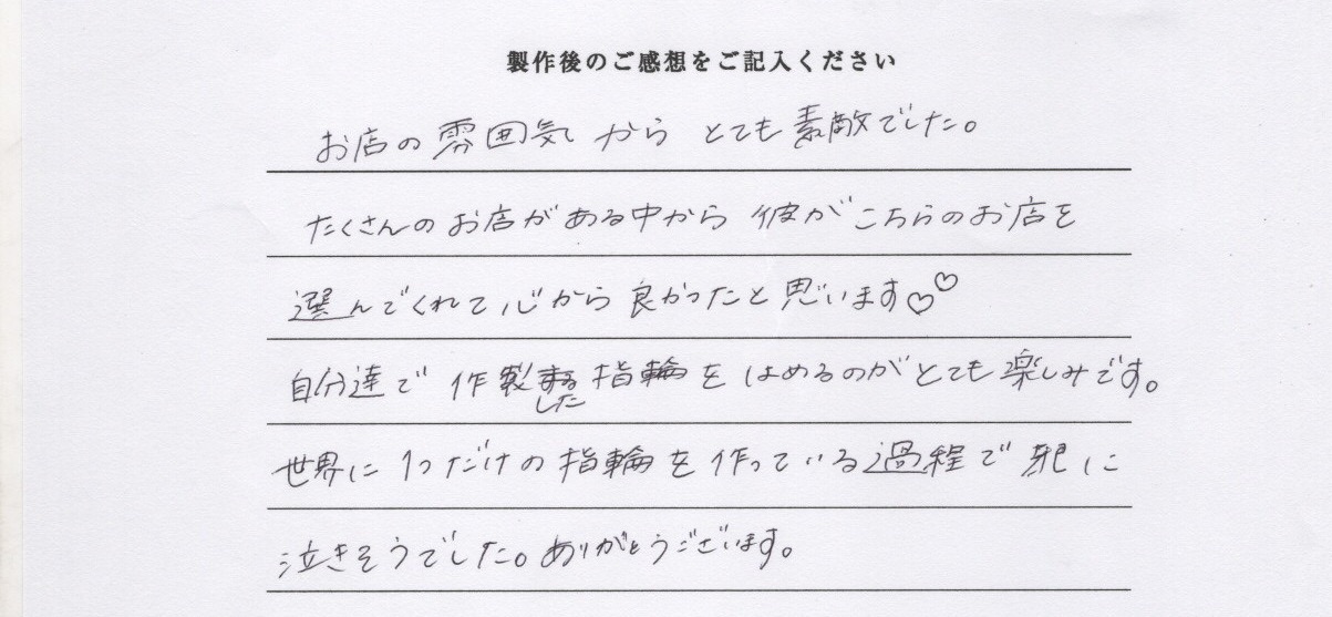 世界に1つだけの指輪を作っている過程で既に泣きそうでした。