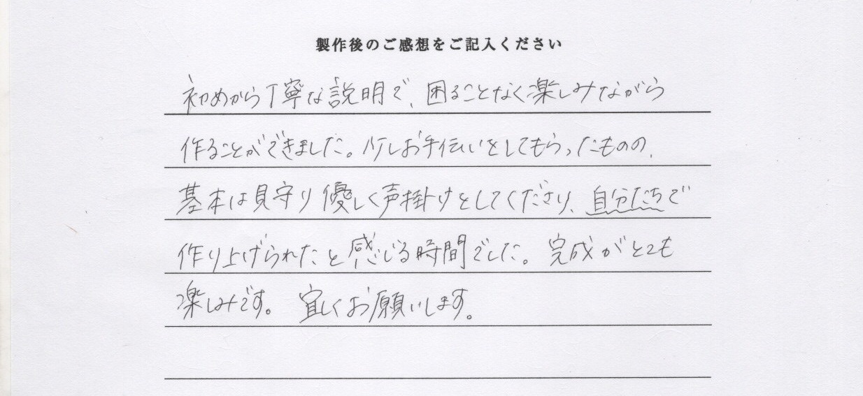 初めから丁寧な説明で、困ることなく楽しみながら作ることができました。
