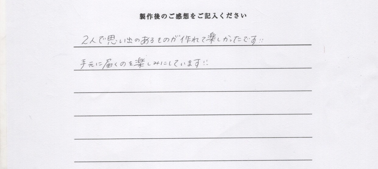 2人で思い出のあるものが作れて楽しかったです!! 手元に届くのを楽しみにしています!!