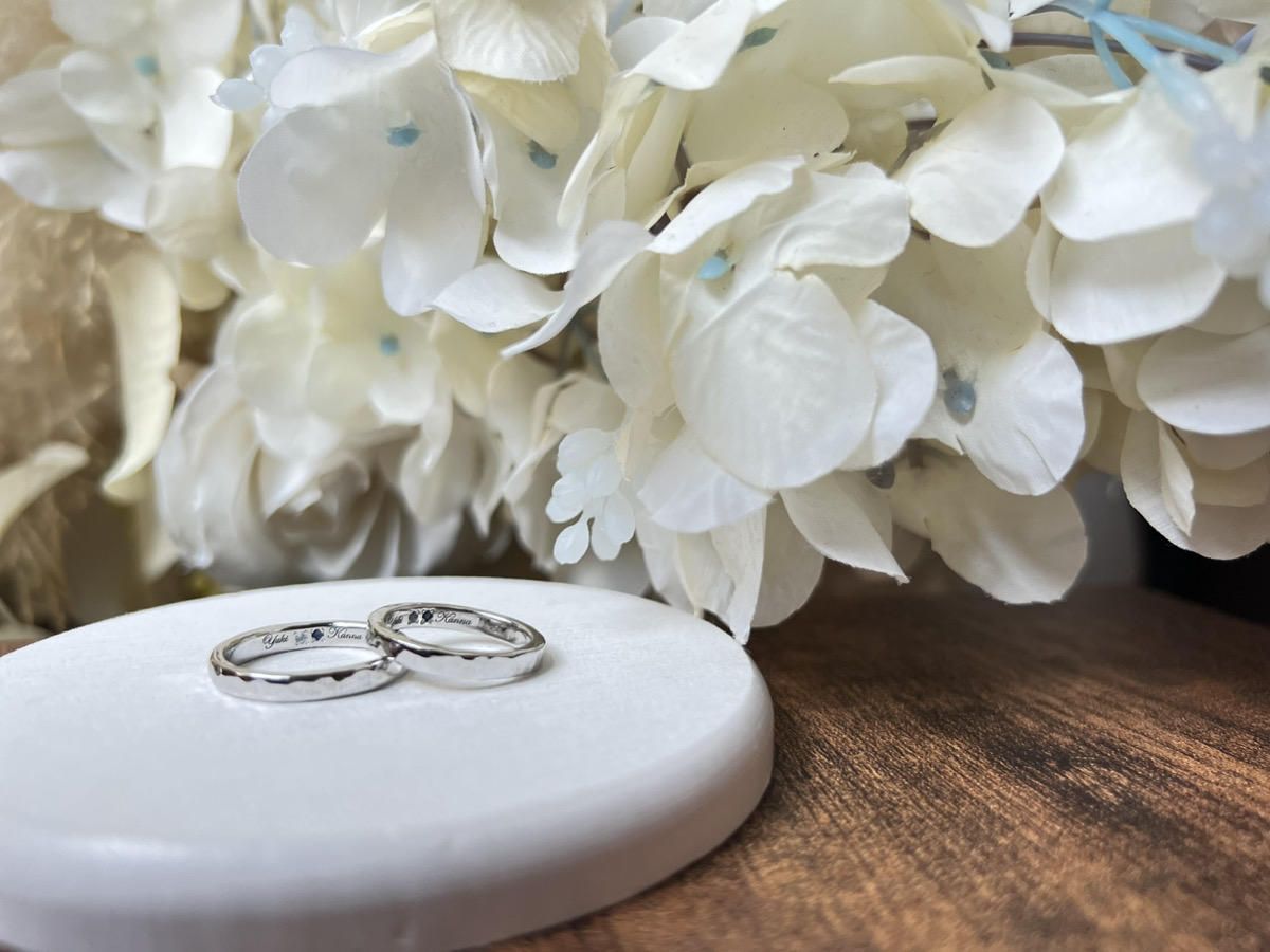 お二人のペアリングはカラーリング加工にレーザー刻印を施し