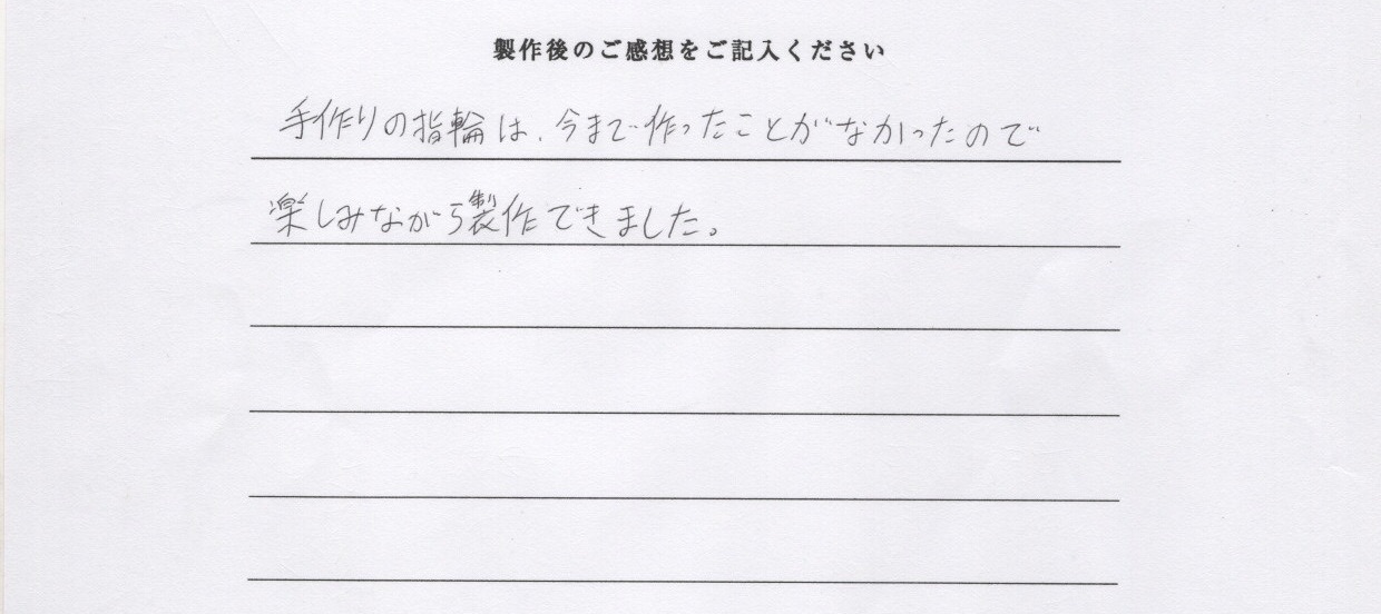 手作りの指輪は今まで作ったことがなかったので楽しみながら制作できました。
