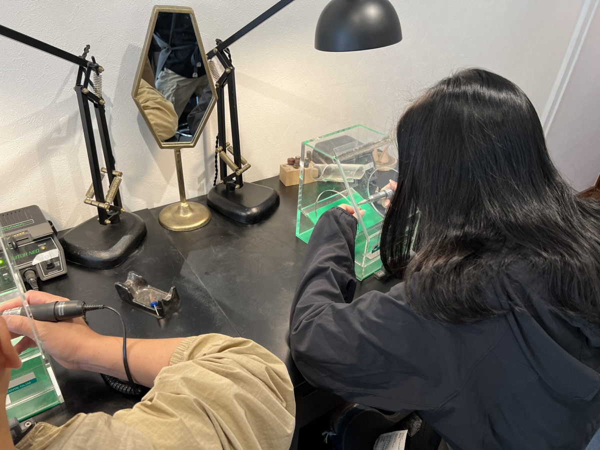 来月ご入籍予定のお二人が結婚指輪制作にいらして頂きました。打ち合わせから入念に納得いくデザイン選びをしてひとつひとつの工程を楽しみながら制作されてました。