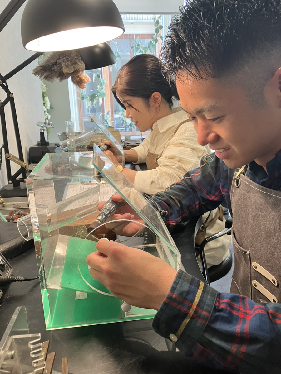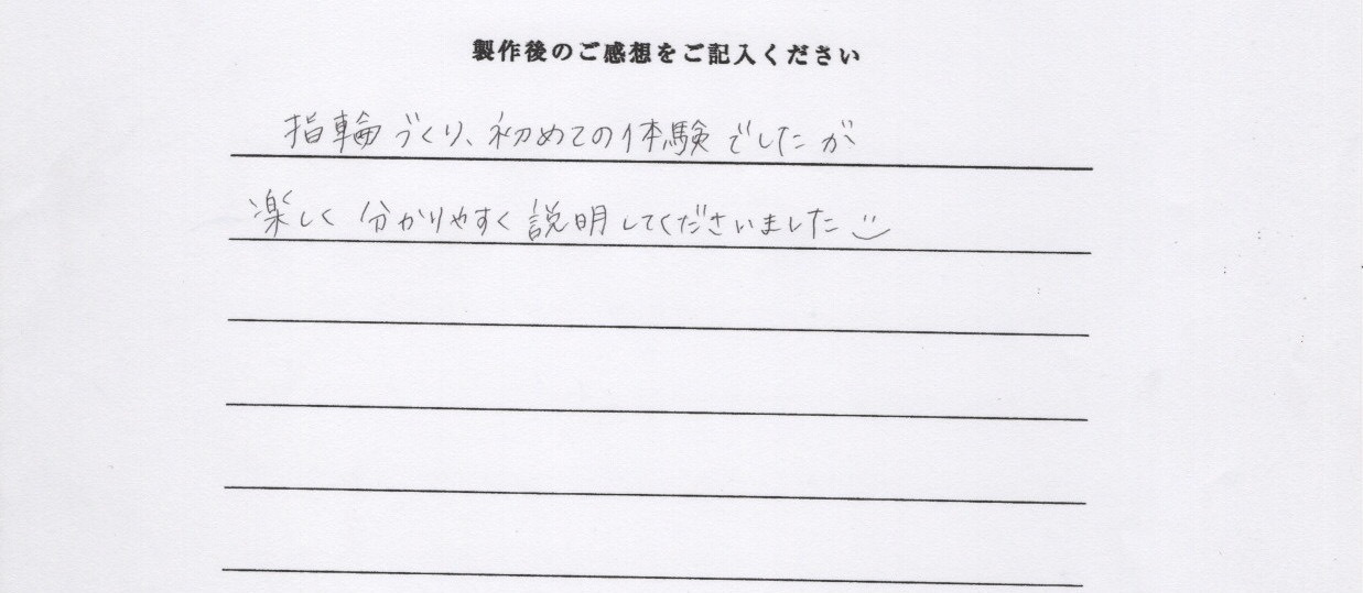 指輪作り、初めての体験でしたが楽しく分かりやすく説明してくださいました。