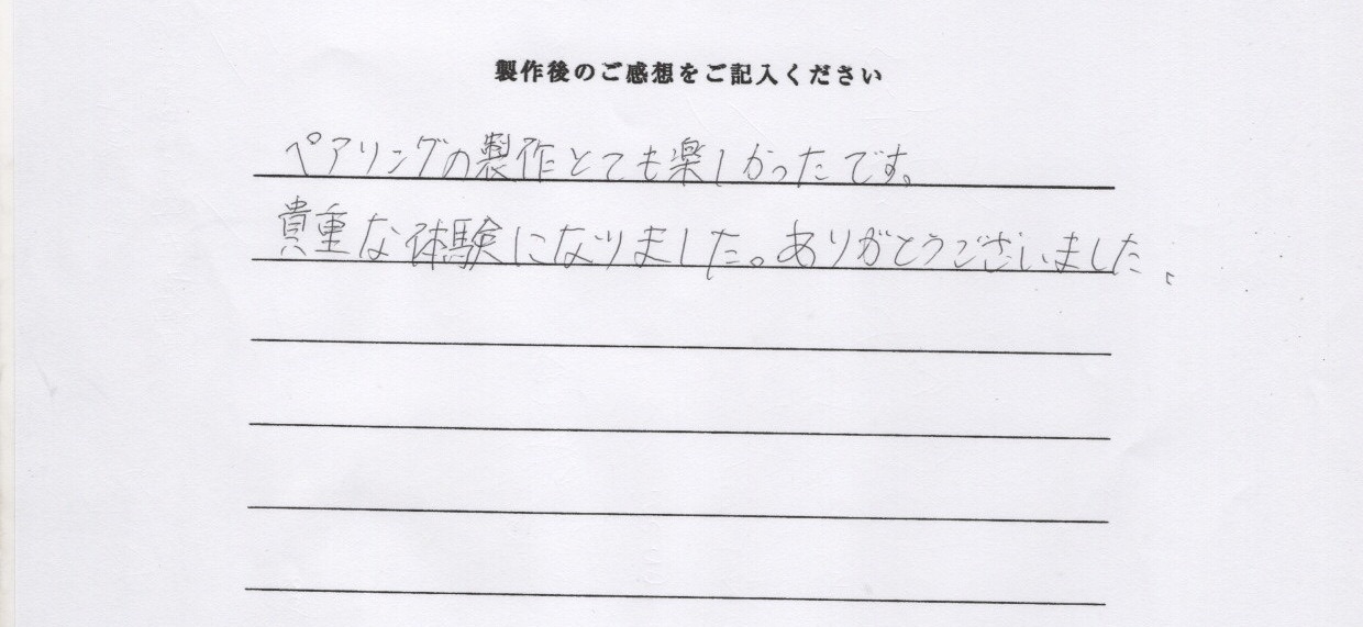 ペアリングの制作とても楽しかったです。 貴重な体験になりました。