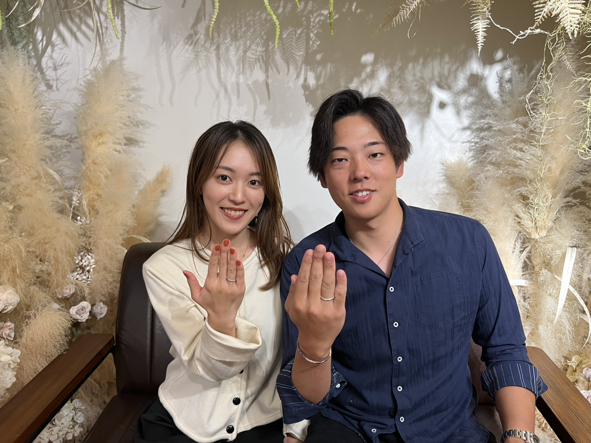 お二人の選んだペアリングデザインはカラーリング加工、レーザー刻印、