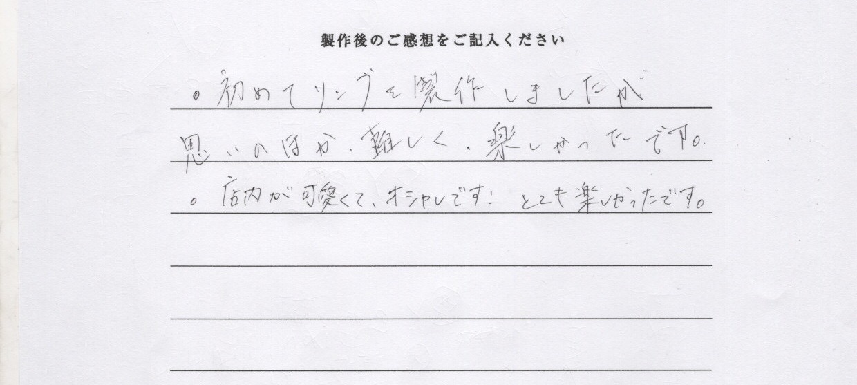 会話を交わしながら楽しく丁寧に作業されて仕上がりの綺麗なリングが完成しました!