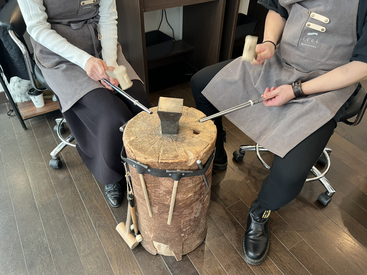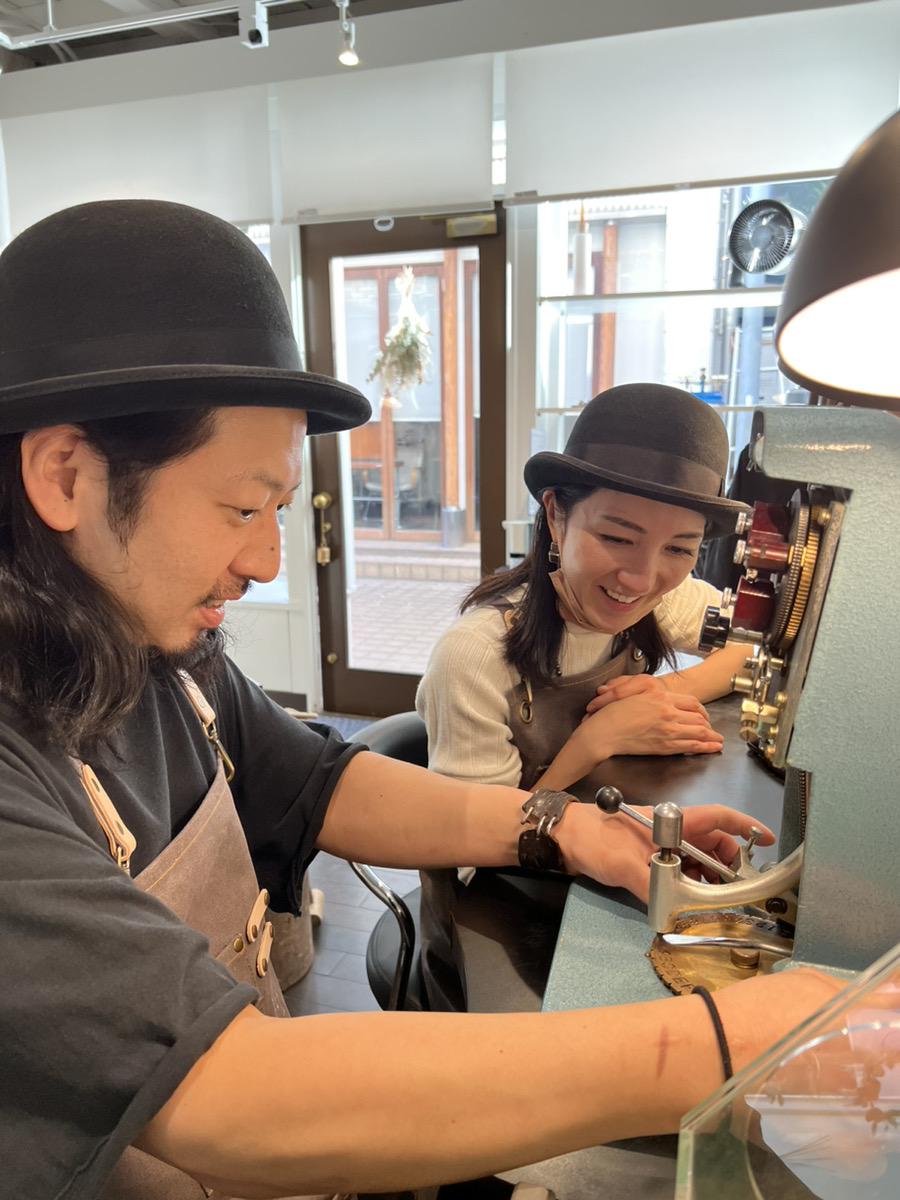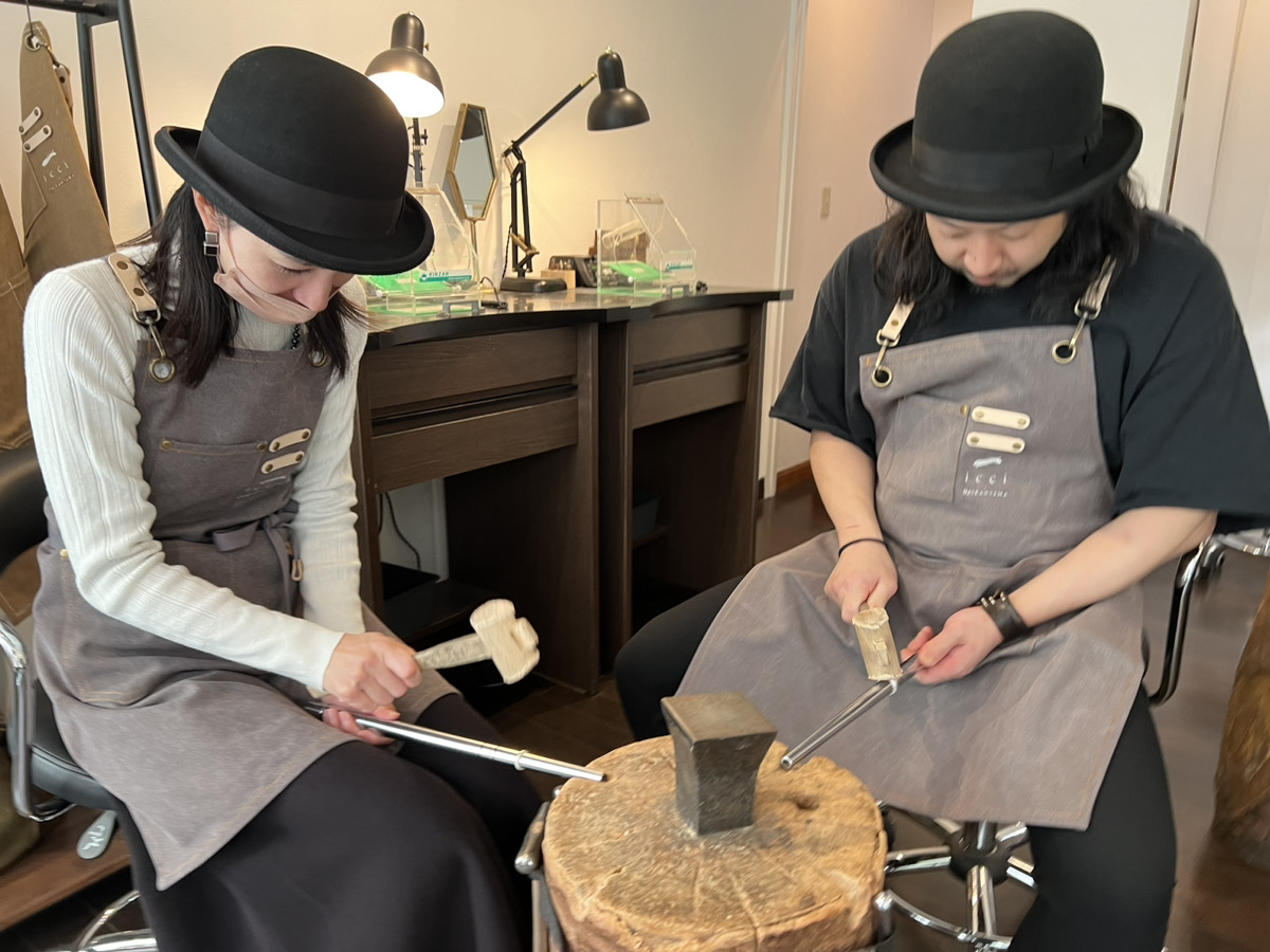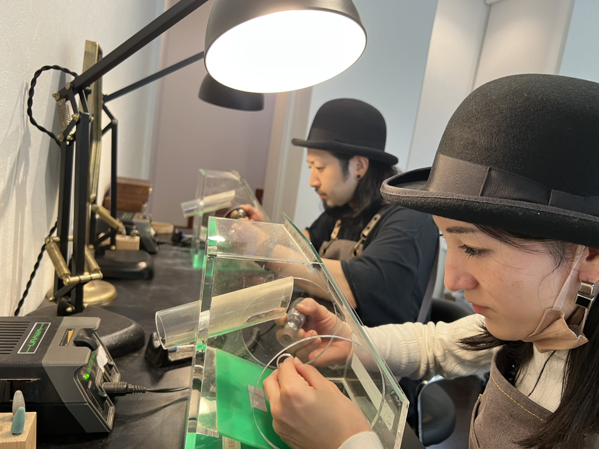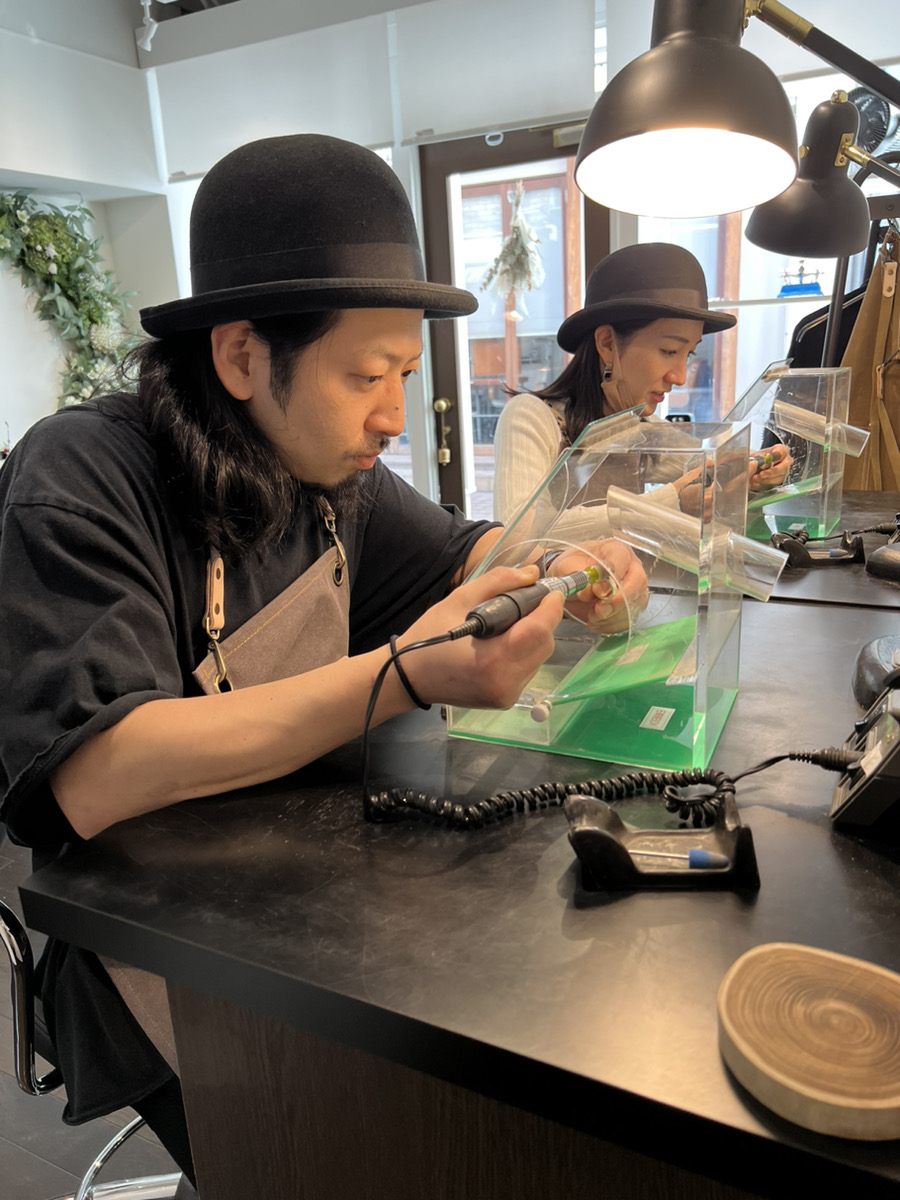 お二人しっかりと相談しあって納得いくデザインを選ばれていました。作業工程ひとつひとつを大事に丁寧にされて綺麗な仕上がりのペアリングが完成しました!