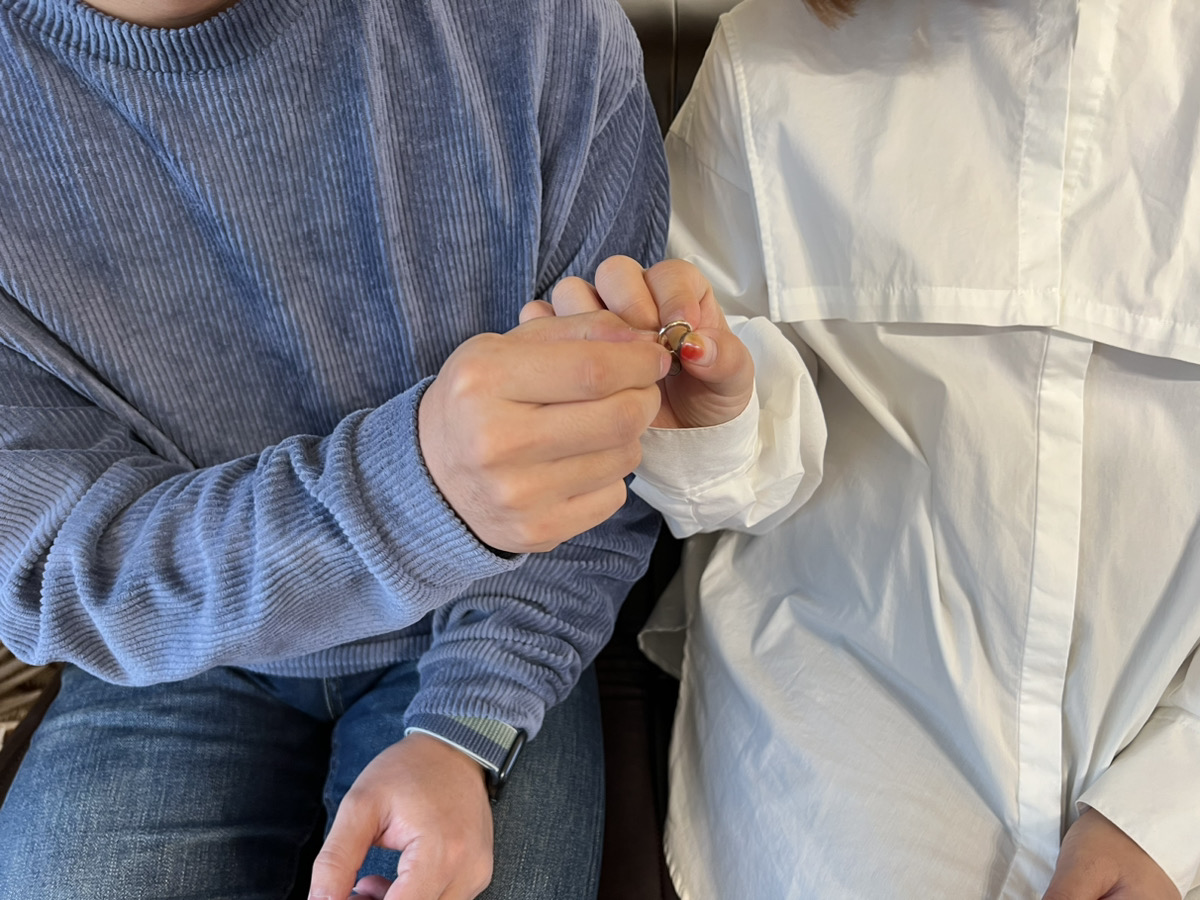 とても幸せそうなお二人が気持ちを込めて作業されていました!とても良い雰囲気の中綺麗な光沢のベビーリングが完成しました!ありがとうございました