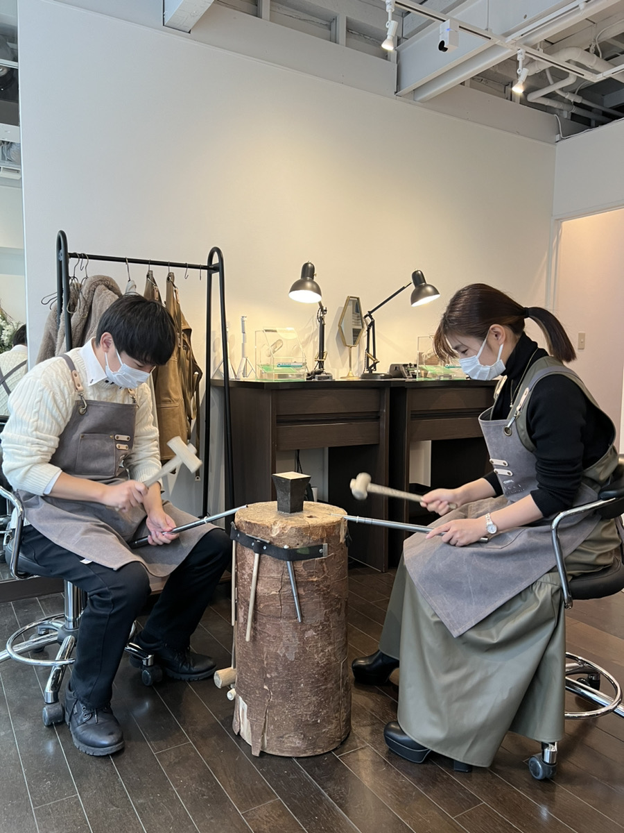 ハンマー模様をお選び頂いたので、作業工程がより一層楽しいものになったのではないでしょうか?終始とても楽しそうに会話をされていたおふたり。お互いの新たな一面も発見できたようで、素敵な時間を過ごすことができましたね。