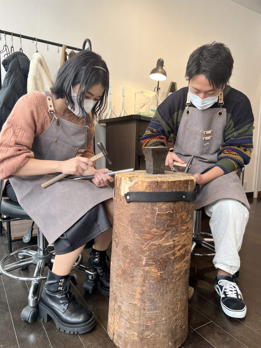 本日はご制作ありがとうございました。表面が丸い形の3mm幅のリングにハンマー模様を施したデザインをお選びいただきました。光が当たりかたによって表情を変えるハンマー模様、きっとずっと着けていたくなるようなリングに仕上がったと思います。長くご愛用いただけますように。