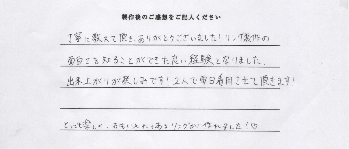手作りペアリング|リング制作の面白さを知ることができた良い経験となりました
