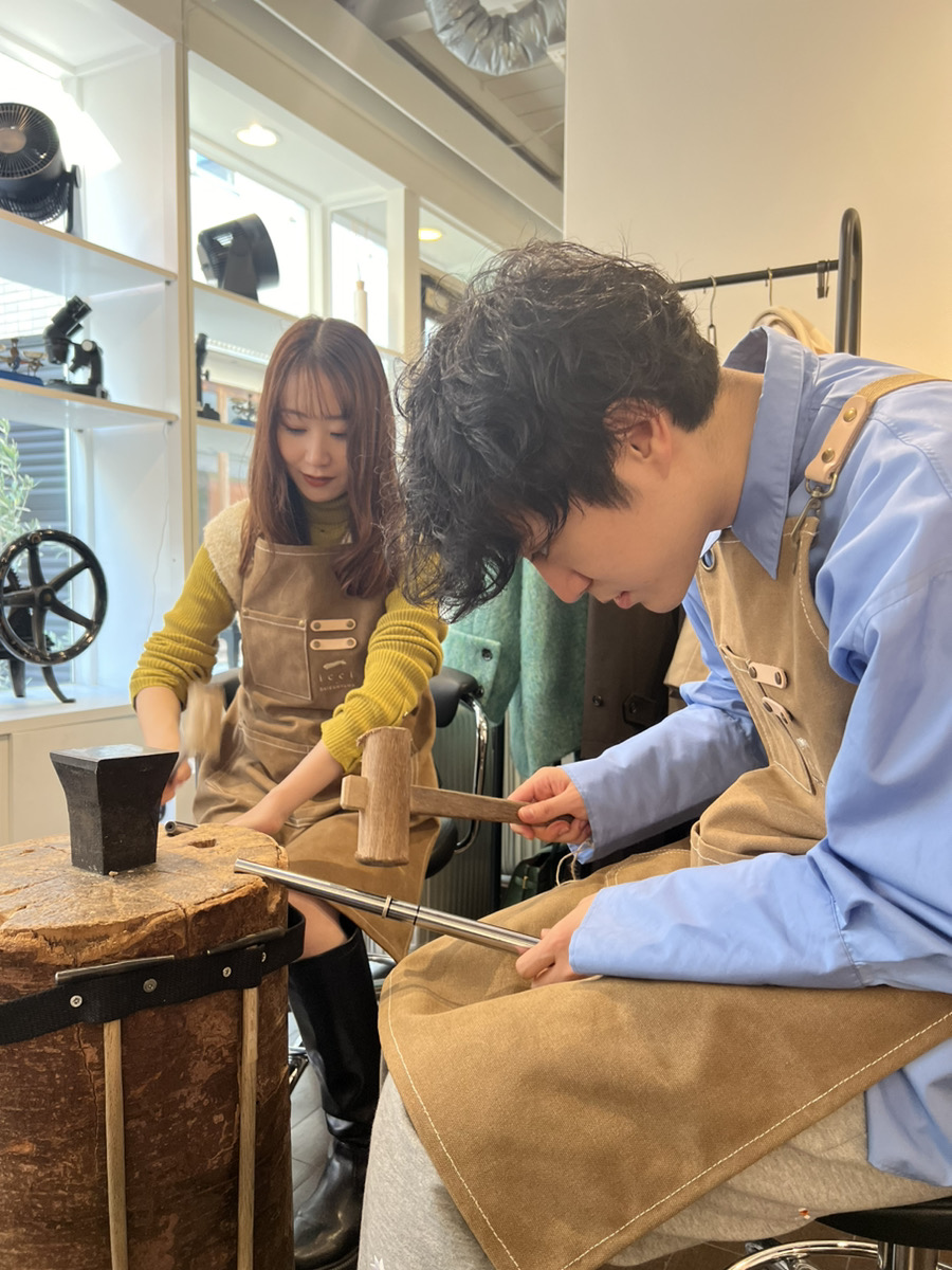 ハンマー模様をお選び頂いたので、より手作り感を感じられるリングに仕上がりましたね。終始楽しく体験できたようで安心いたしました。