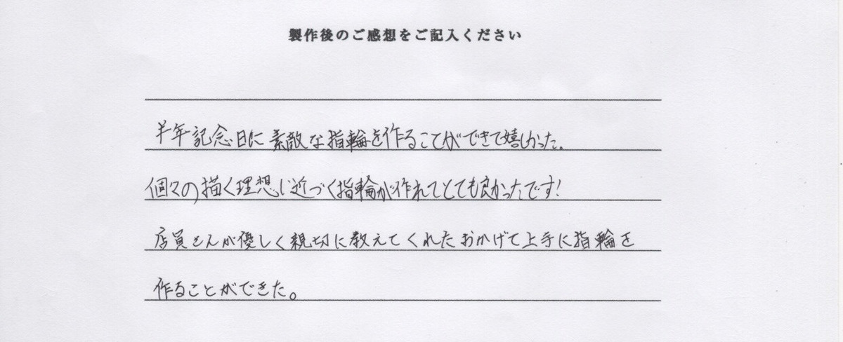 個々の描く理想に近づく指輪が作れてとても良かったです!