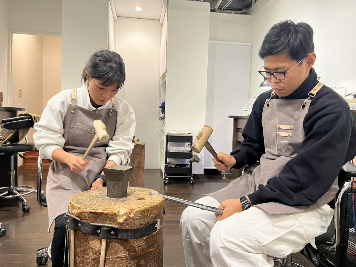 終始丁寧に、一生懸命作業を進めてくださったおふたり。ハンマー作業も磨きの作業もとても綺麗にできていて素晴らしいリングに仕上がりましたね。