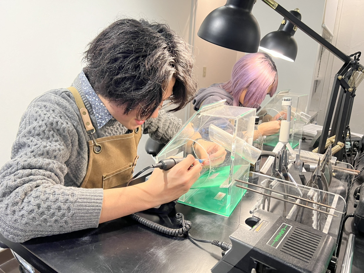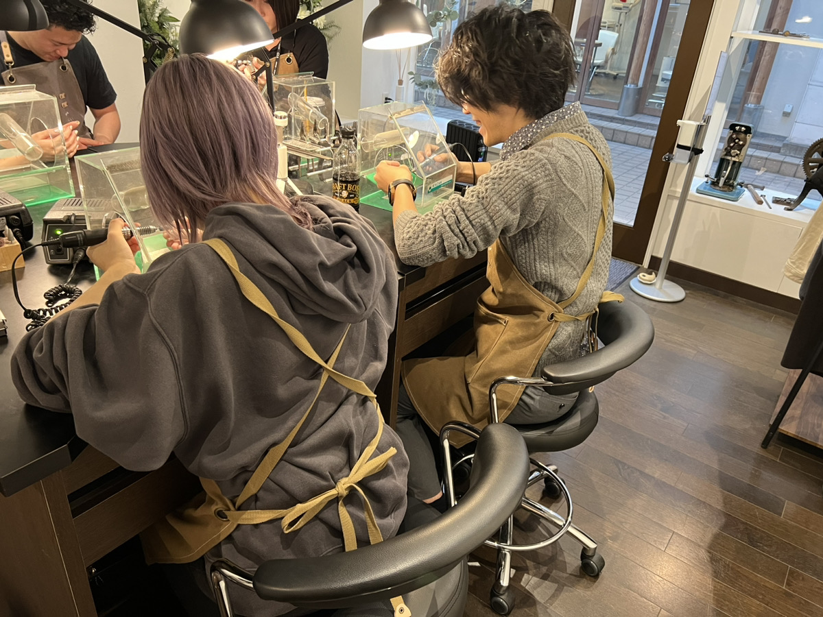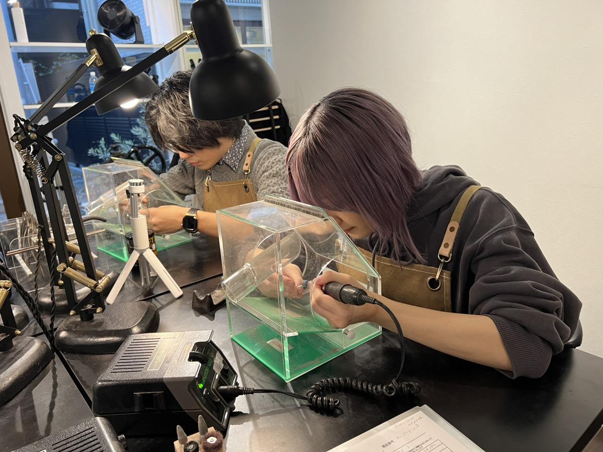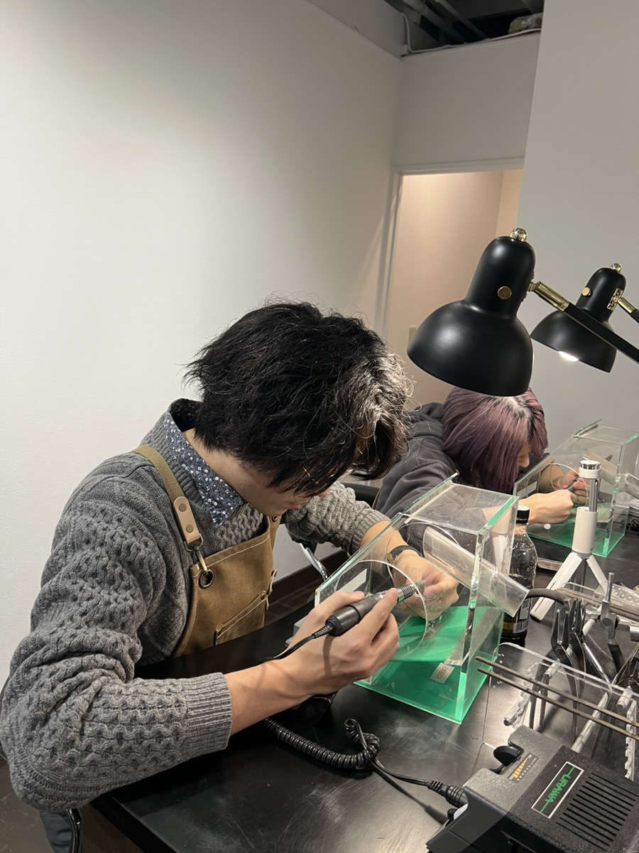 シルバーペアリングの制作にご来店いただき、ありがとうございました。リングの艶出しの作業をおふたりとも大変気に入ってくださったようで、ご自宅にも道具が欲しいとおっしゃるほどでした。本当に楽しそうに制作されていて、丁寧に作業されたので、とても綺麗な仕上がりでした。そんなリングを末永くご愛用いただけると嬉しいです。