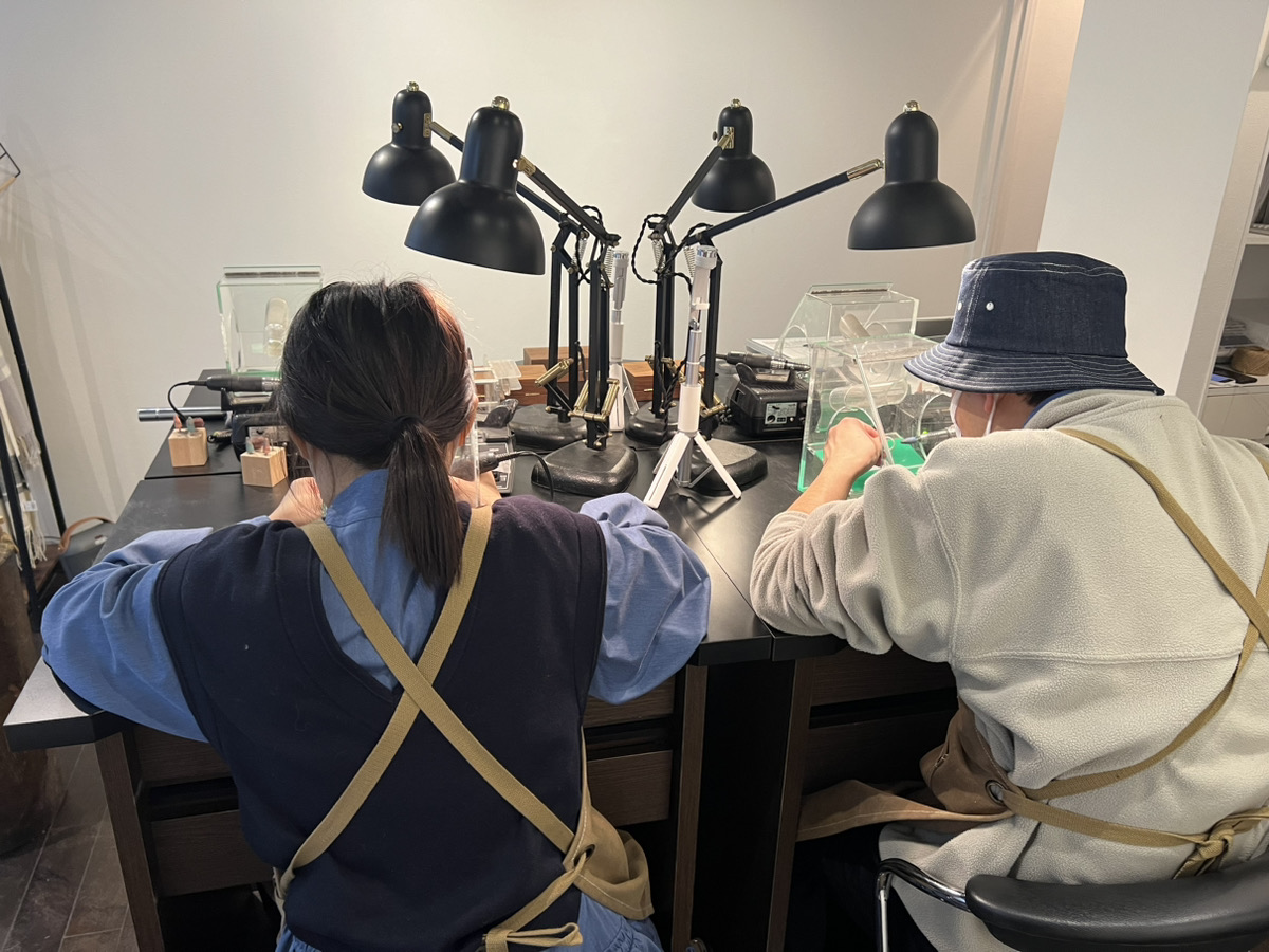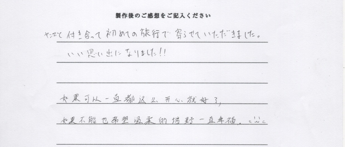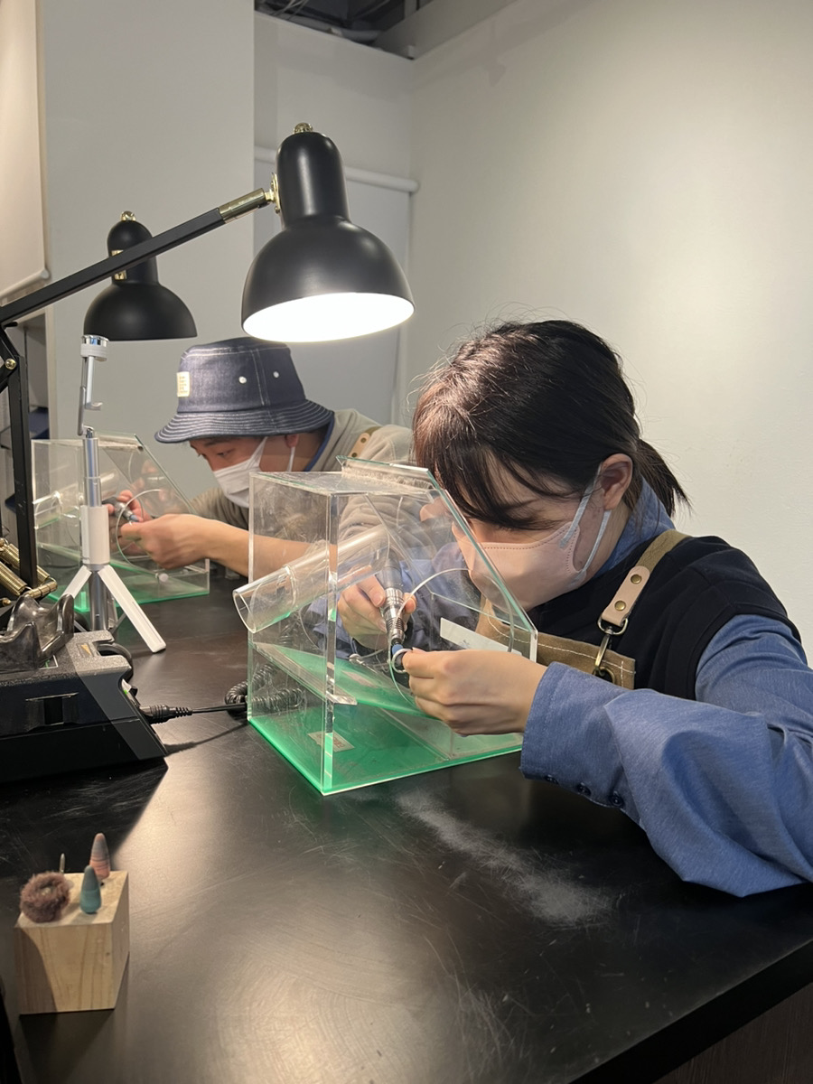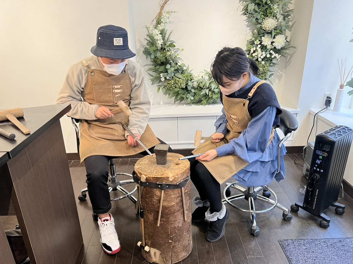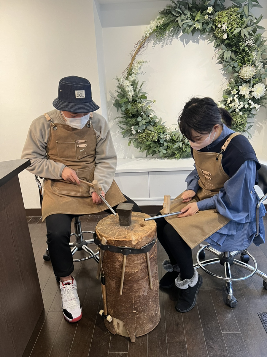 シルバーペアリングの制作にお越しいただき、誠にありがとうございました。遠方からいらしていただいて、とても良い思い出になったとおしゃっていただいたので嬉しく思います。制作中も丁寧に作業をされていらっしゃいました。お二人の良い思い出として日々身につけていただけますと幸いです。