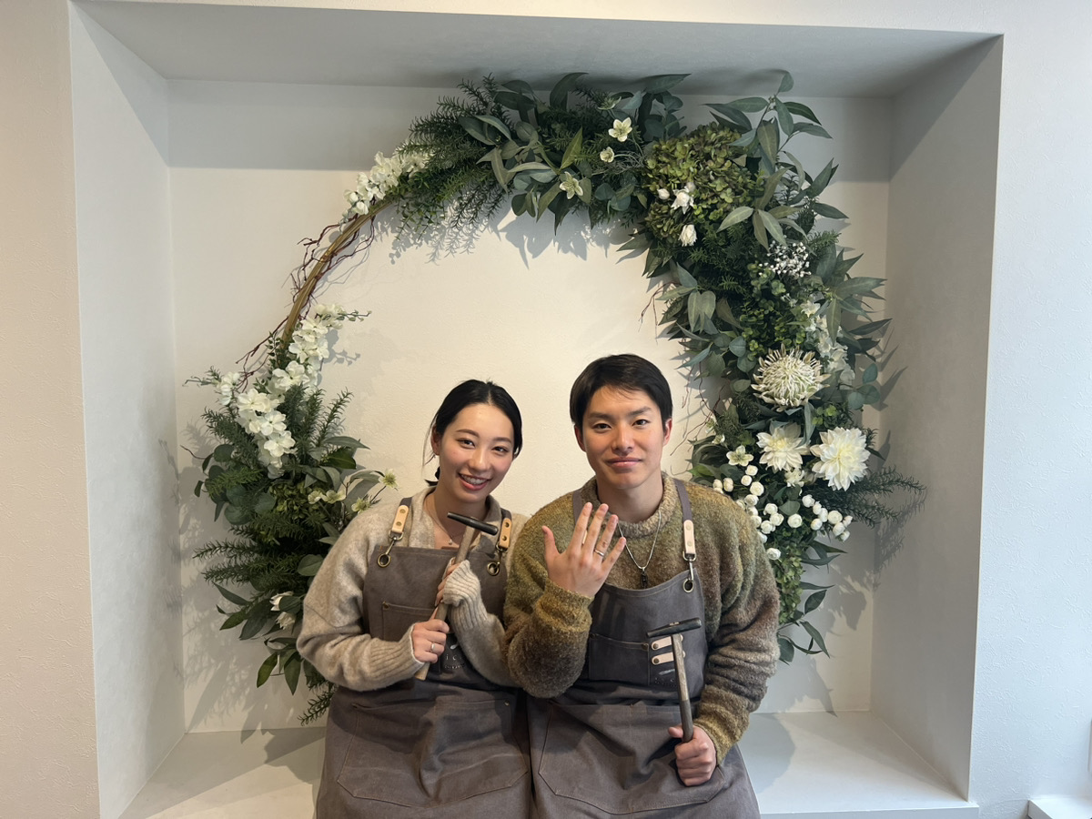 女性のお客様は既製品ではなかなかサイズの合うものがないということでしたので、今回ご自身に合うサイズで制作いただけて良かったです。お相手様のものをお作りになったので、さらに思い出深いお品になったかと思います。末永くお手元でご愛用いただけますと幸いです。