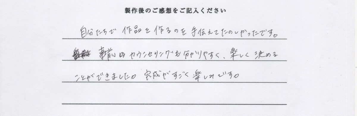 この度は当店でご制作いただきありがとうございました。