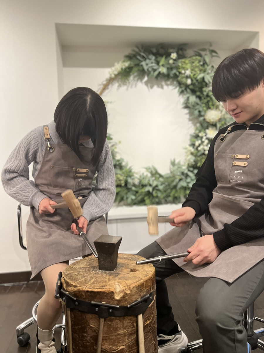おふたり共とても丁寧で、叩く作業も磨く作業も集中してされていました。鏡面仕上げだったので、根気よく磨きもかけていただき、その工程も楽しんでいただけたようで良かったです。