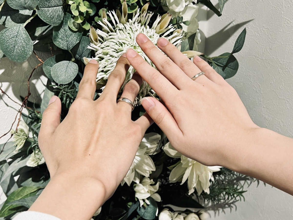 ずっとニコニコしながらスタッフのお話しを聞いてくださるおふたり。そんな素敵なおふたりに「楽しかった」と感じていただけて本当に嬉しいです。リングもとても綺麗に仕上がりましたね。