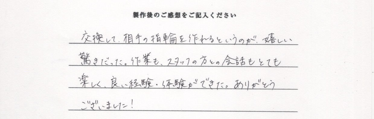 作業もスタッフの方との会話もとても楽しく、良い経験、体験ができた