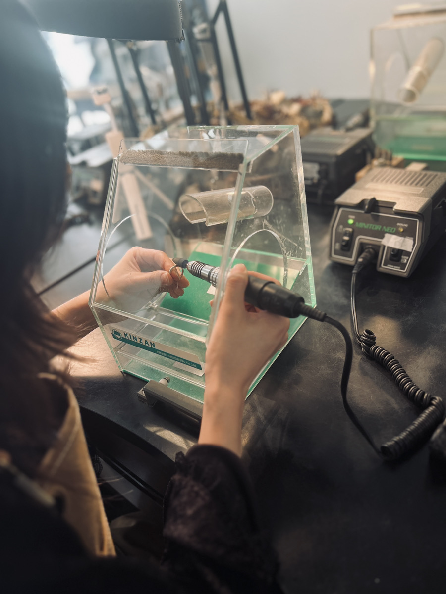 光が当たるとキラキラと輝く表面がとても可愛いリングに仕上がりましたね。