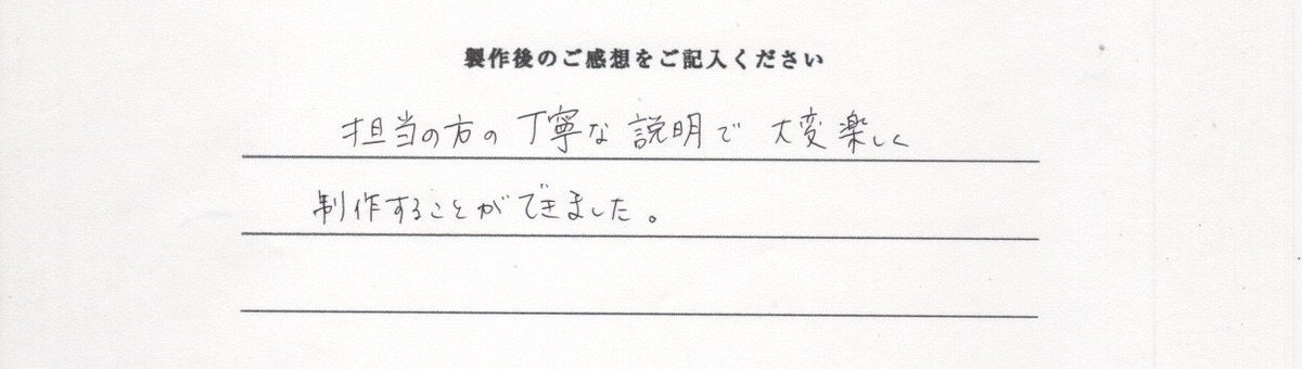 本日は当店でペアリングをご制作いただき誠にありがとうございました。