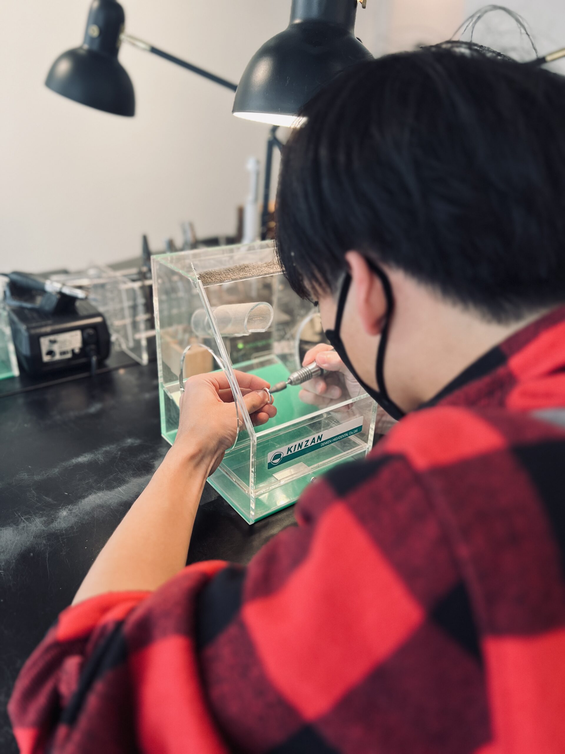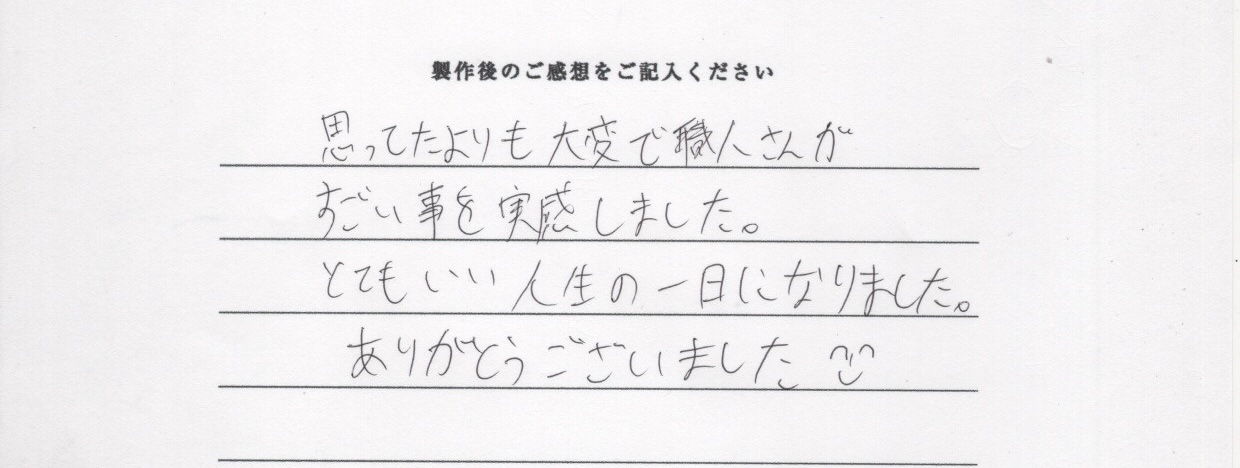 お相手様のリングを集中して丁寧にお作りになられ、素敵な出来上がりになりました。
