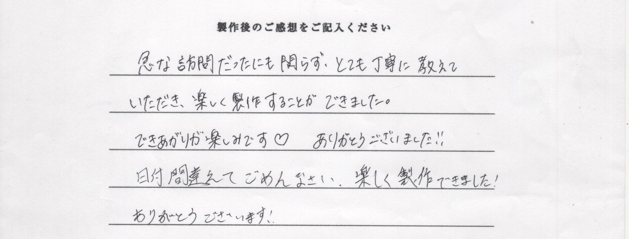 急な訪問だったにも関わらず、とても丁寧に教えていただき、楽しく制作することができました。