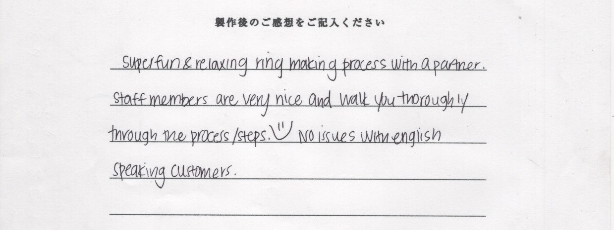 staff members are very nice and walk you throughtly through the process/steps! No issues with english speaking customers.