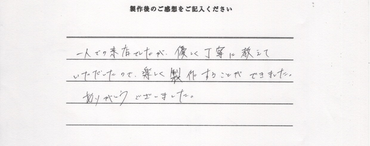 プレゼント用のリング制作にいらっしゃり、丁寧に作業されたので素敵に仕上がりました。きっとお相手様にも喜んでいただけると思います。