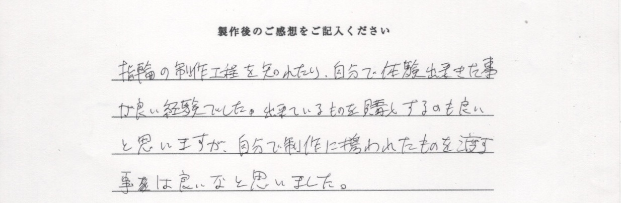 「手づくり」したものがお好きなお相手様のために、心を込めて一から指輪をご制作いただきました。どの工程もお上手にこなしていただいたので、最後には非常に綺麗なプラチナリングに仕上がりました。