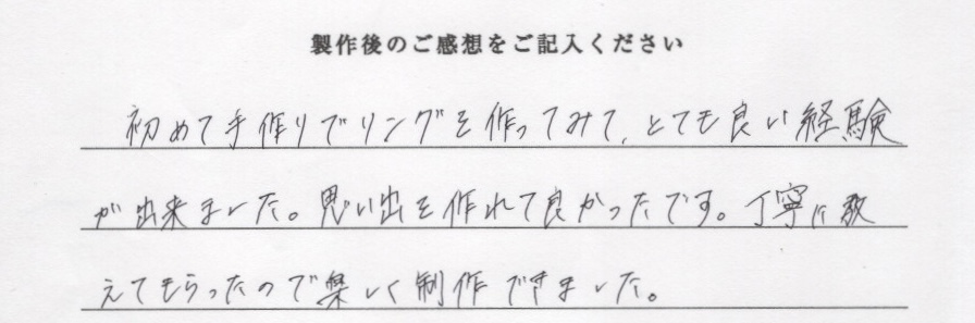 本日は当店でシルバーペアリングをご制作いただき、誠にありがとうございました。