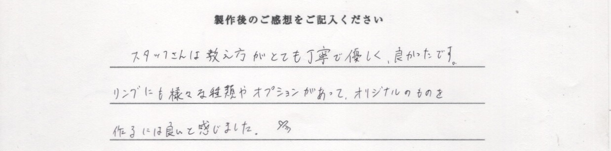 本日は当店でシルバーペアリングをご制作いただき、誠にありがとうございました。