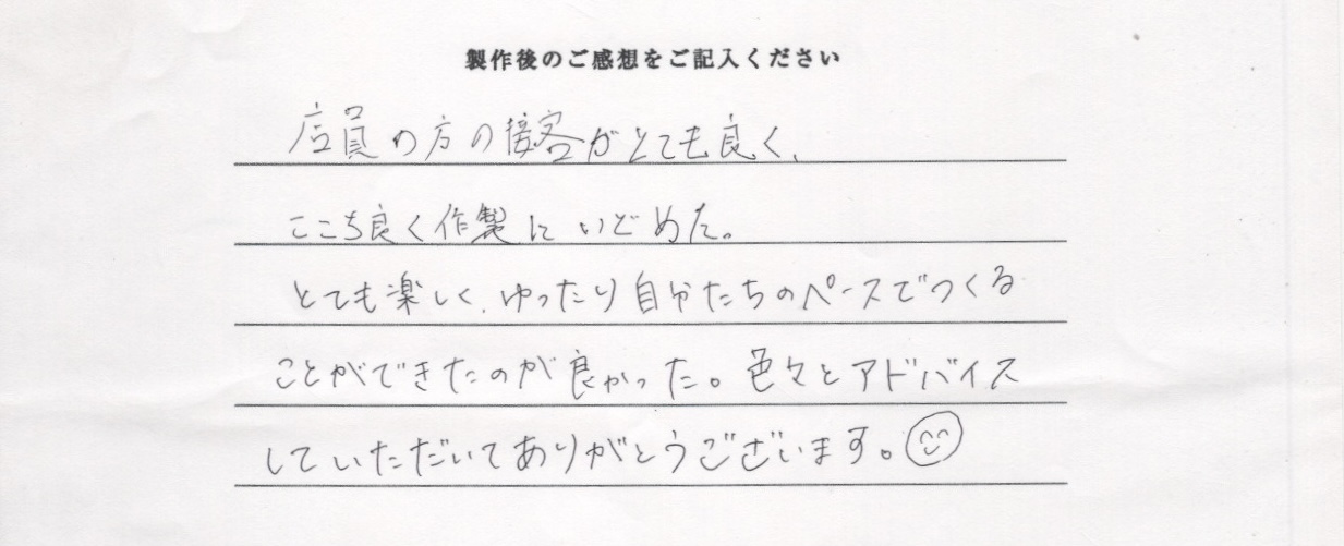 くつろいで楽しく製作していただけたようで、何よりです。お褒めのお言葉もいただき、大変嬉しく存じます。