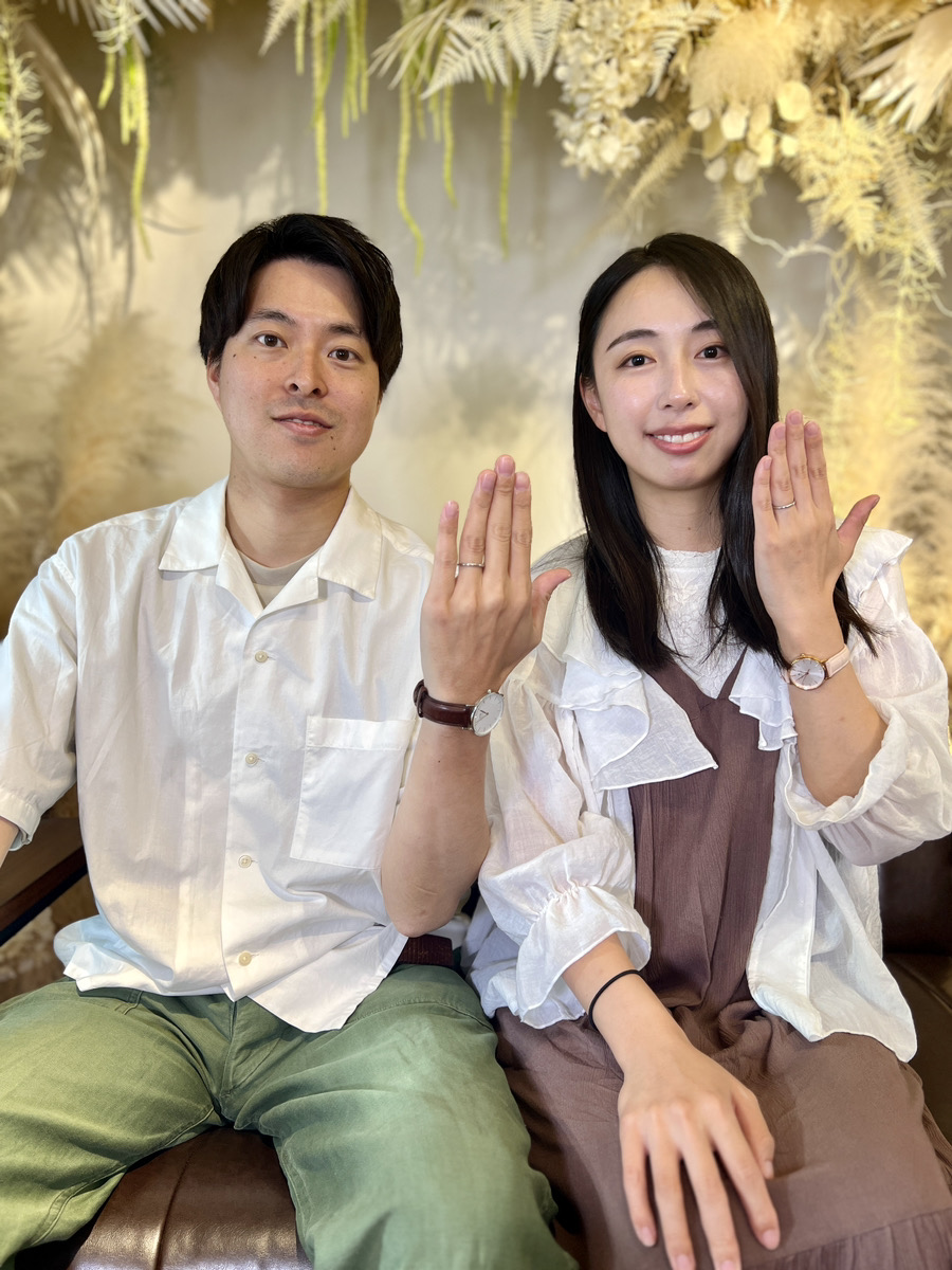 2mm幅のプラチナでご制作いただきました。深みのあるツヤが美しい上品なリングに仕上がり、おふたりにとてもお似合いでした。
