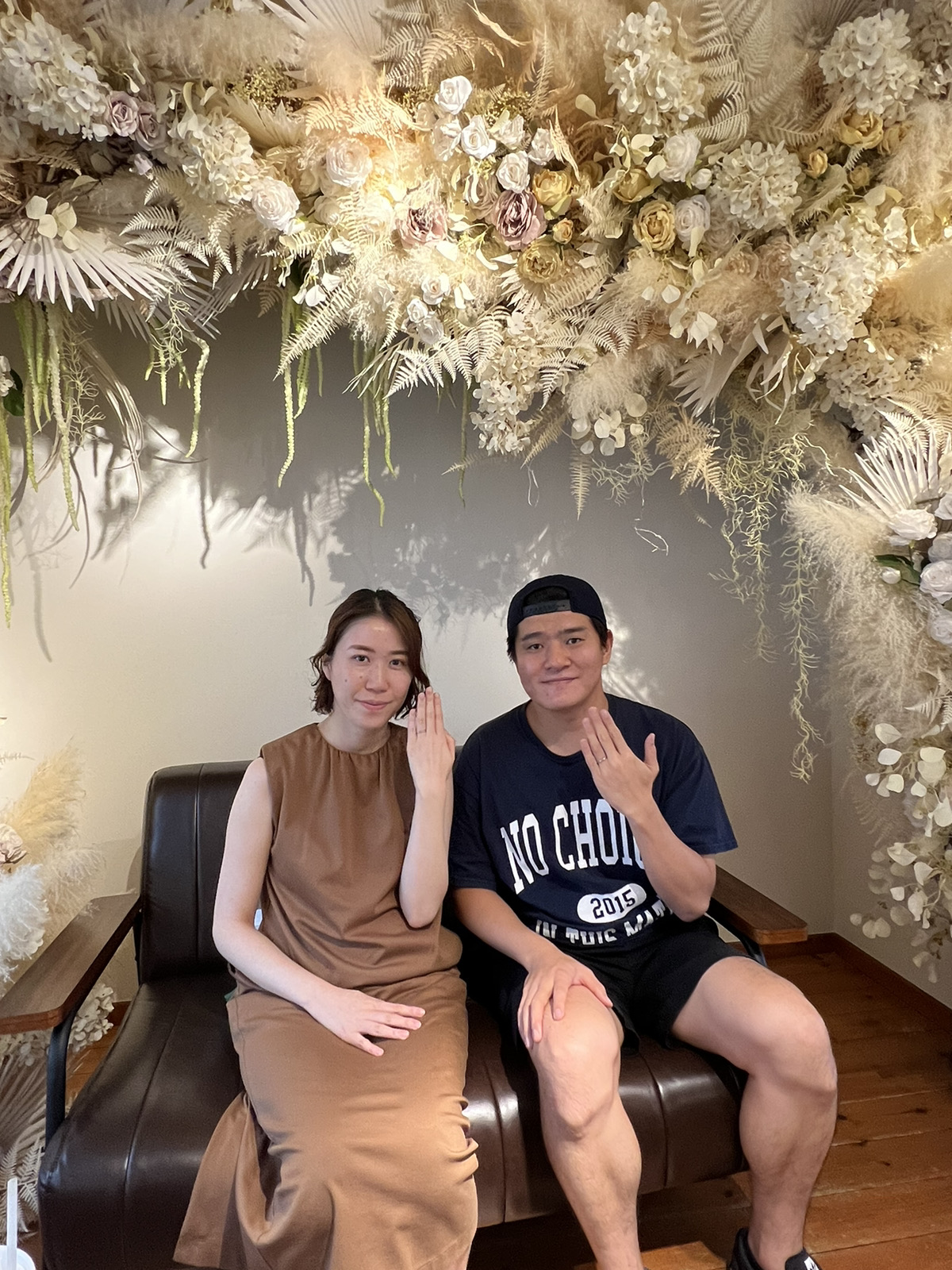 当店2階レセプションルームのフラワーアーチを手掛けたアーティストのご紹介で今回結婚指輪を制作して頂きました。