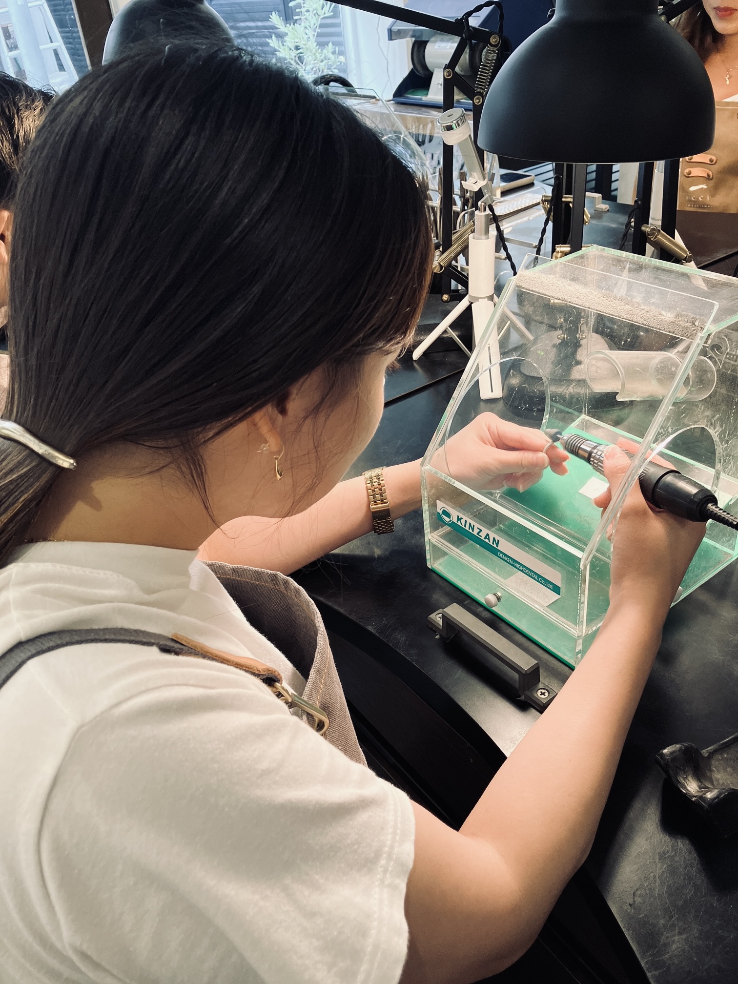 リングの種類も沢山あって、自分好みのリングを作成することが出来ました。作り方についてていねいにサポートしてくださり、叩き方を工夫することで世界に1つだけのオリジナルリングができて大満足です。本日はありがとうございました。
