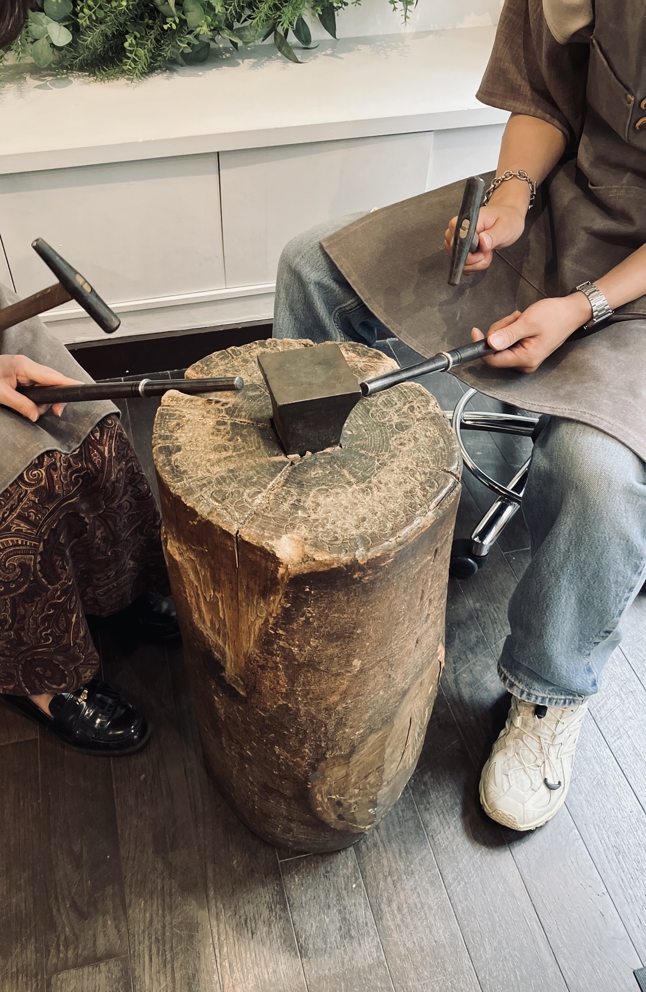 今回ハンマー打ちのリングを制作されたので、1番手作りの味がでるオリジナルリングになったと思います。お二人とも集中して丁寧に作業をしていただき、素敵な出来上がりでした。末長くご愛用いただけると幸いです。