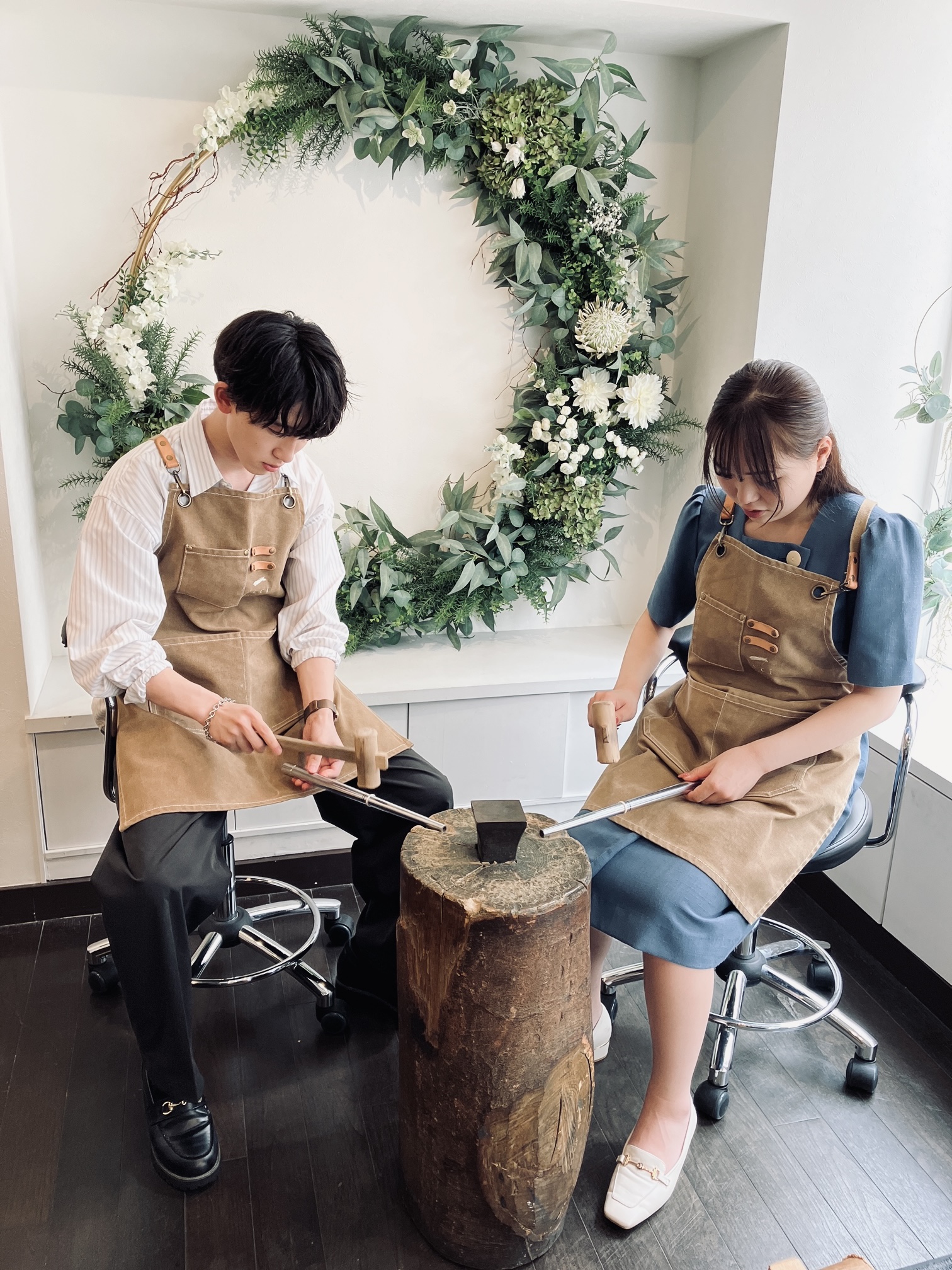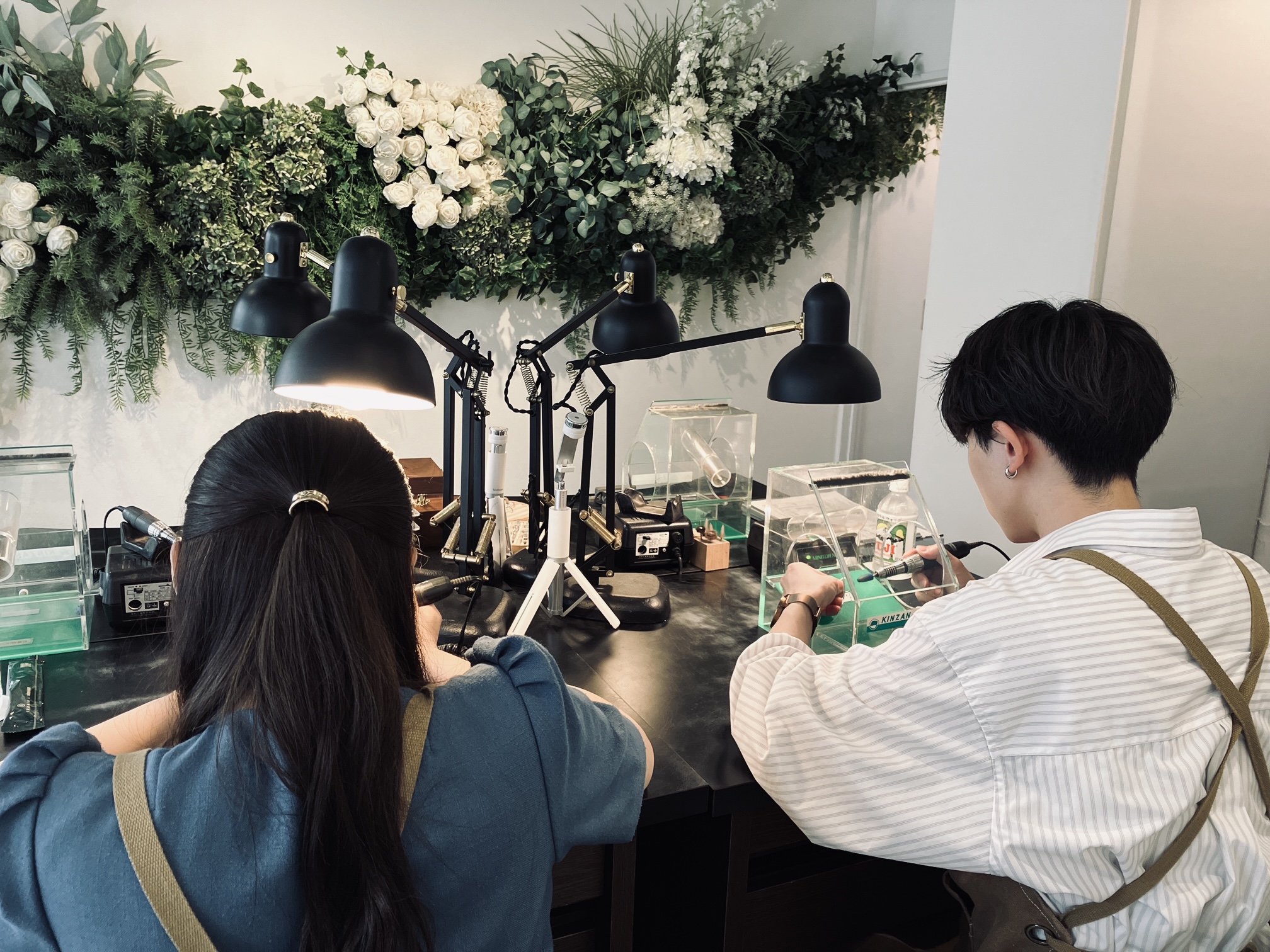 おふたりで楽しく制作いただけたようで何よりです。丁寧に作業をしていただいたので、素敵なリングになりました。加工の仕上がりを楽しみにお待ちください。ご来店誠にありがとうございました!