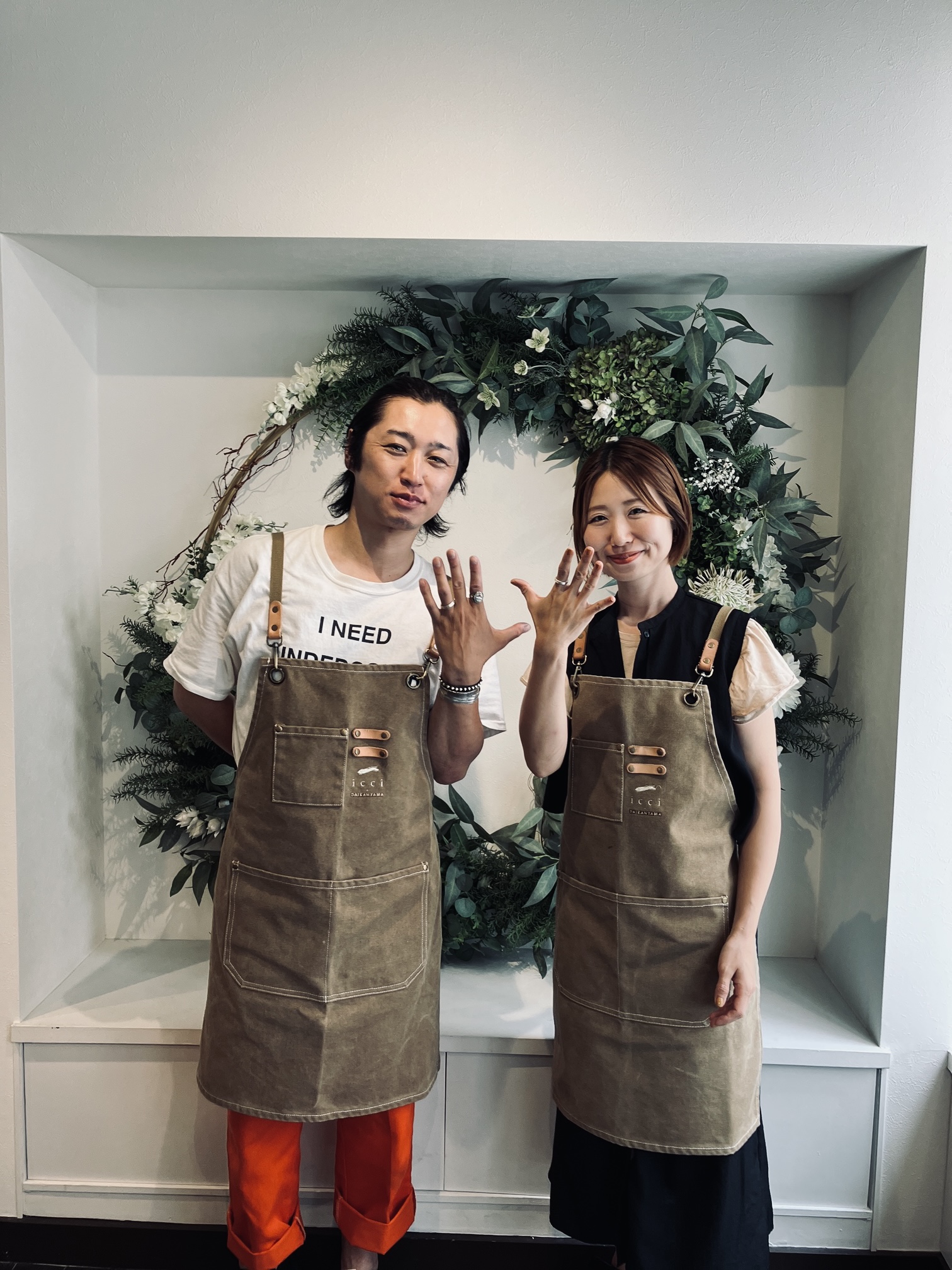 おふたりとも幅も同じものを選ばれ、お揃い感抜群のリングになりました。スターダスト加工もご自身で綺麗にいれていただきました。加工でしばらくお預かりしますが、完成を楽しみにお待ちくださいませ。