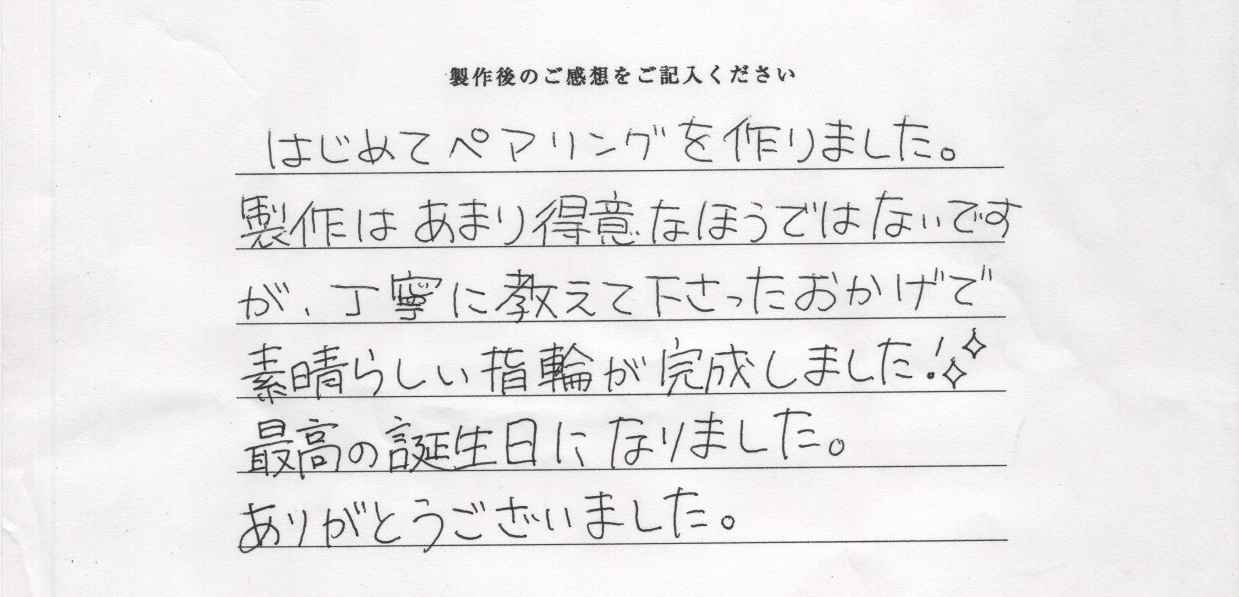 この度は数あるお店の中から大切なペアリングご制作にicci代官山をお選びいただきまして誠にありがとうございます。